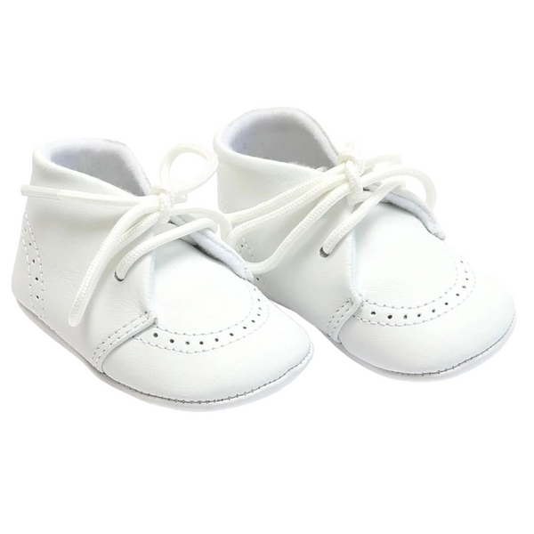 Benny is an oxford-inspired design for little feet in buttery soft crib booties. This darling style is the shoe of choice for christening, baptism, or any special event.