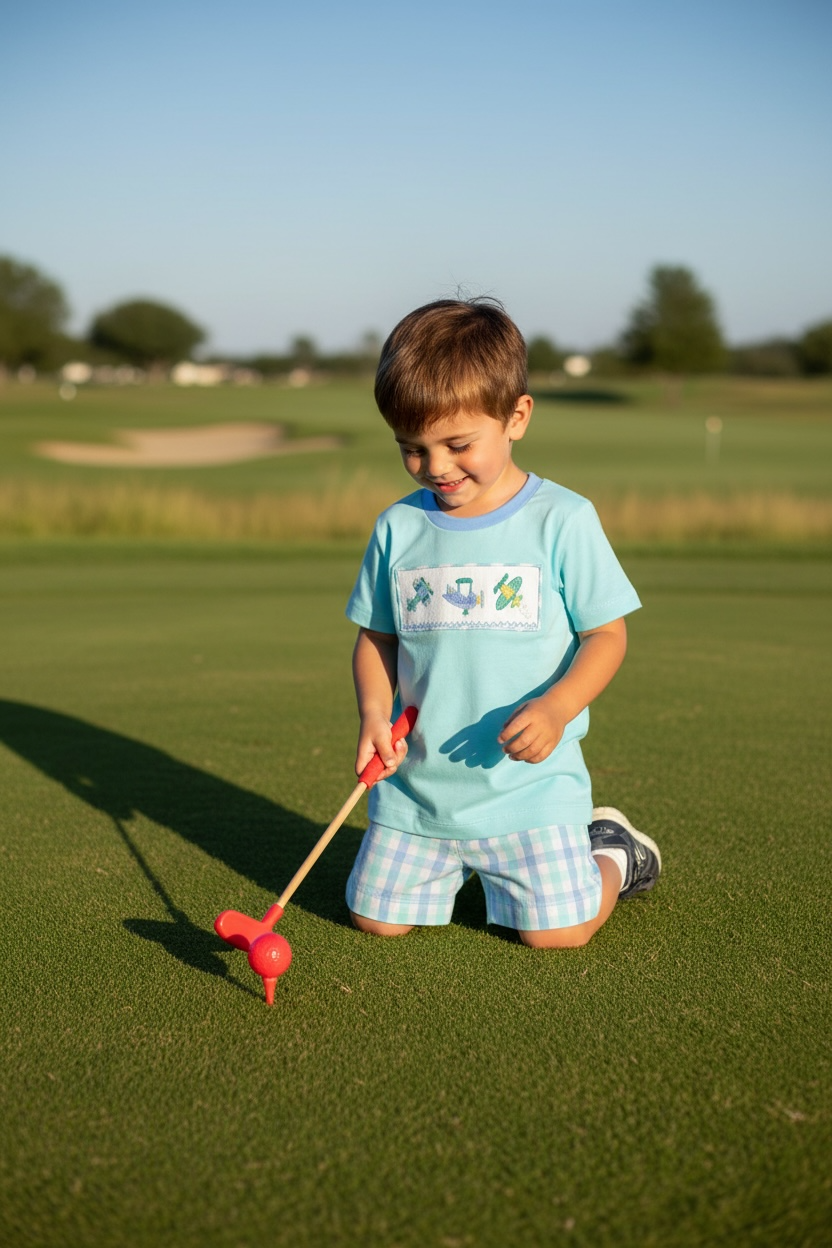 Banana Split Airplane Smocked Boys Short Set