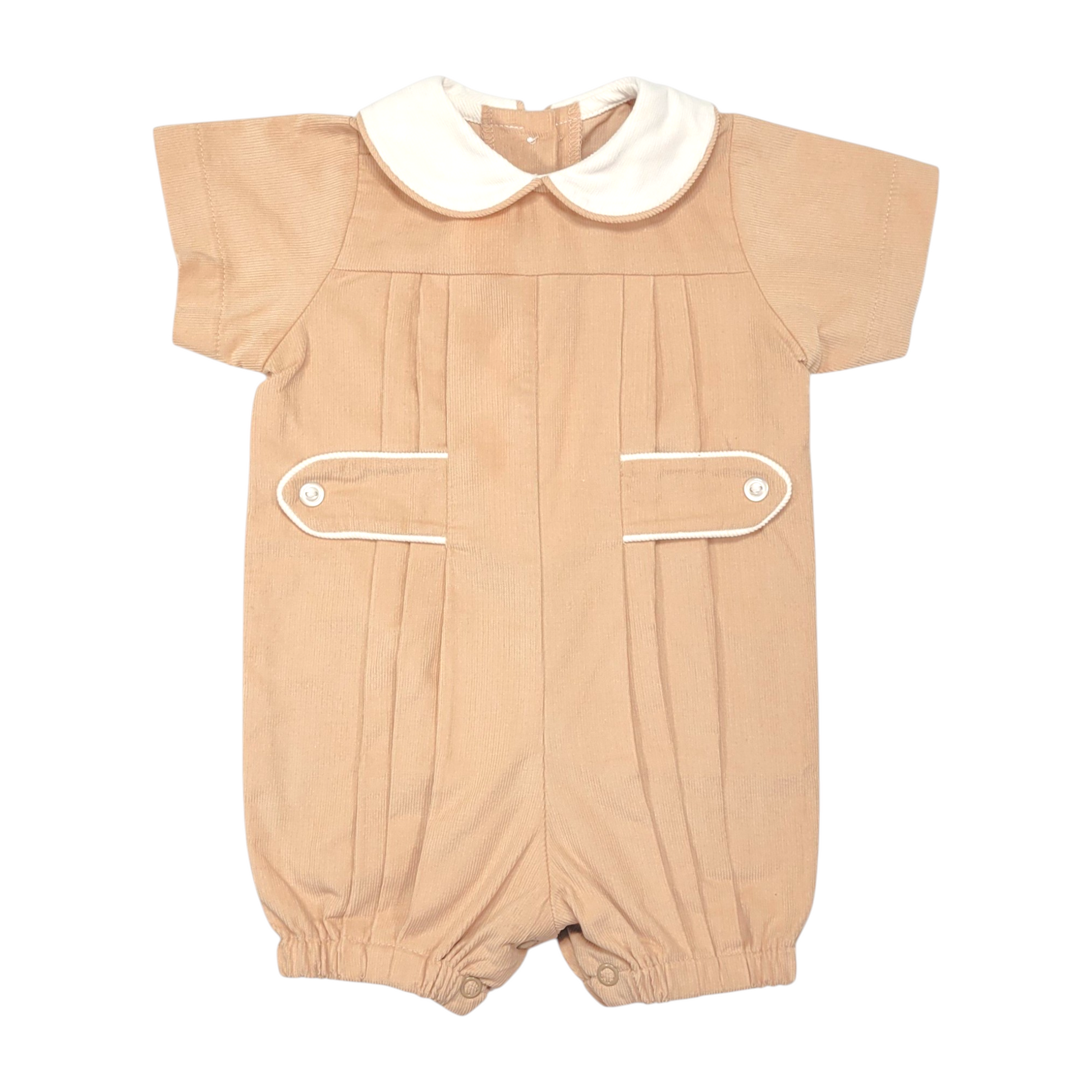 A classic choice for little gentlemen, the Andrew Bubble is crafted in High Point Khaki Corduroy. The traditional white collar and front pleats add timeless detail, making this piece both comfortable and refined. Perfect for portraits, holidays, or everyday wear with heirloom style.