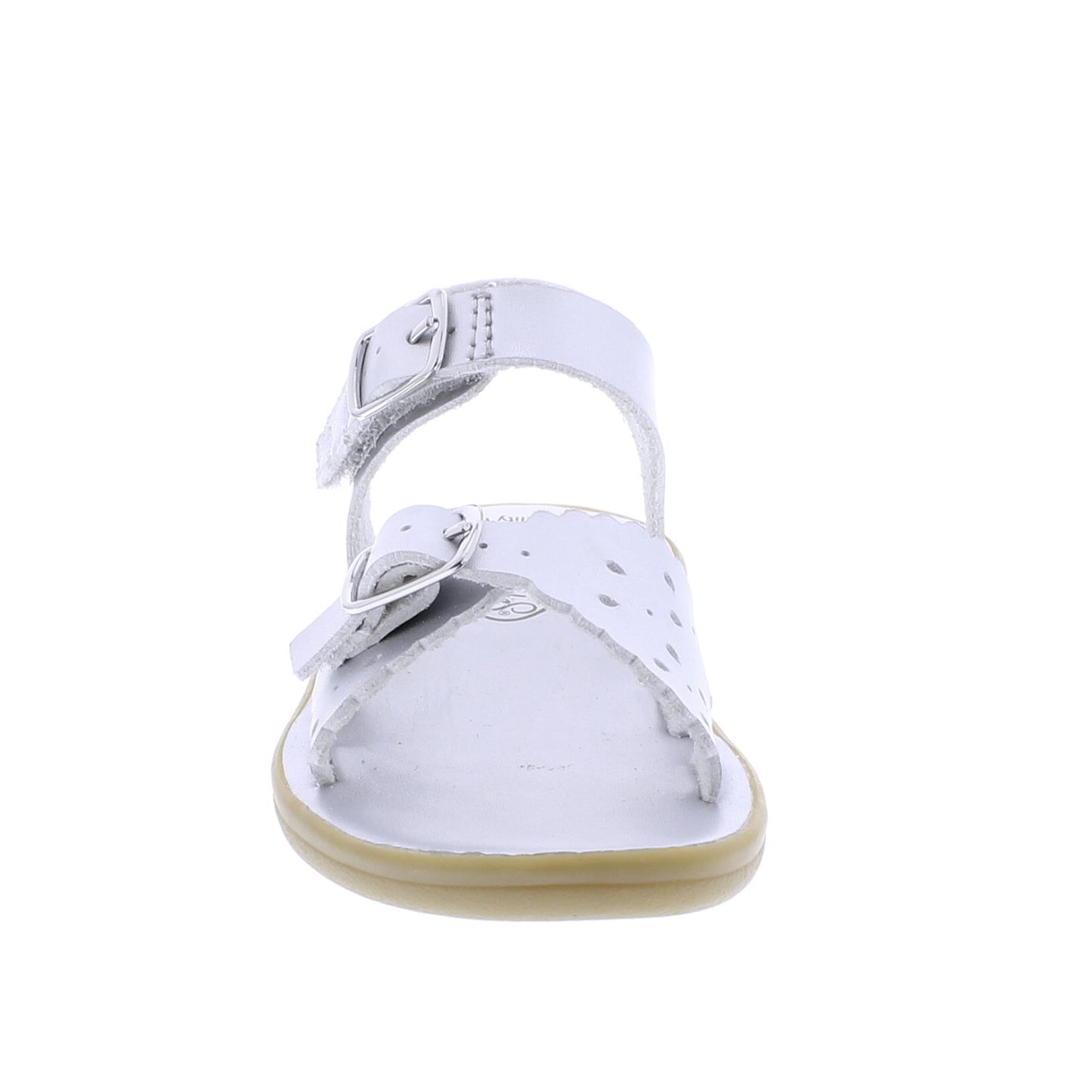 The Ariel is an open toe, open heel microfiber sandal featuring true-buckle forefoot strap with decorative tear-drop perf design and hook-and-loop ankle strap with a decorative buckle.