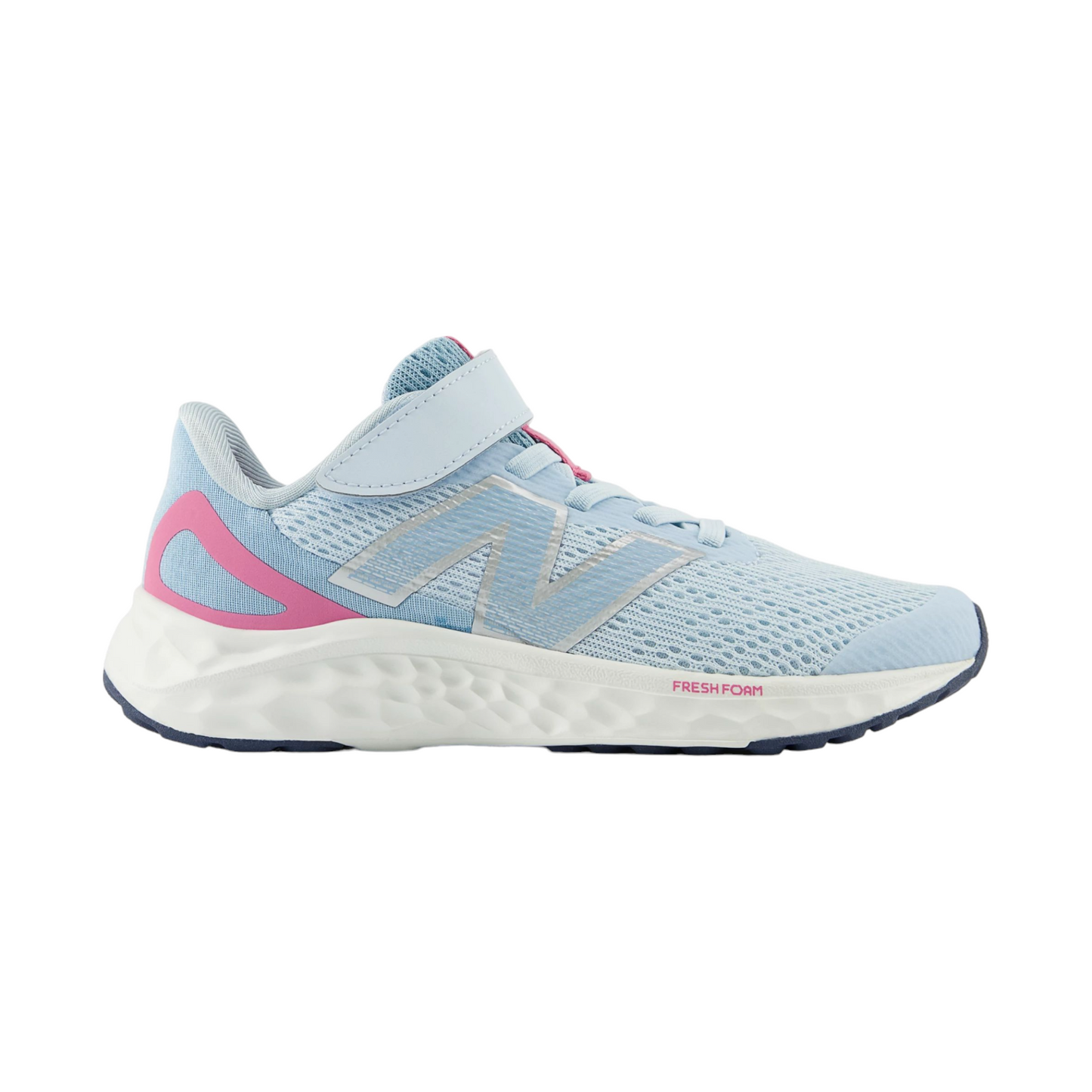 The New Balance Fresh Foam Arishi v4 Bungee Lace is a versatile athletic shoe kids can wear anywhere. Featuring a soft Fresh Foam cushioned midsole and rubber outsole pods, this sporty kids’ running shoe blends next-level style with all-day comfort and performance. The synthetic and mesh upper delivers lightweight support and the alternative closure allows for quick and easy changes.