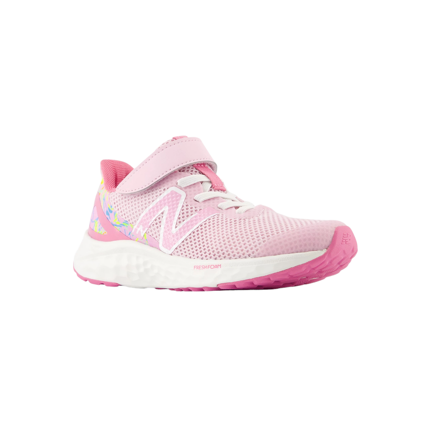 The New Balance Fresh Foam Arishi v4 Bungee Lace is a versatile athletic shoe kids can wear anywhere. Featuring a soft Fresh Foam cushioned midsole and rubber outsole pods, this sporty kids’ running shoe blends next-level style with all-day comfort and performance. The synthetic and mesh upper delivers lightweight support and the alternative closure allows for quick and easy changes.