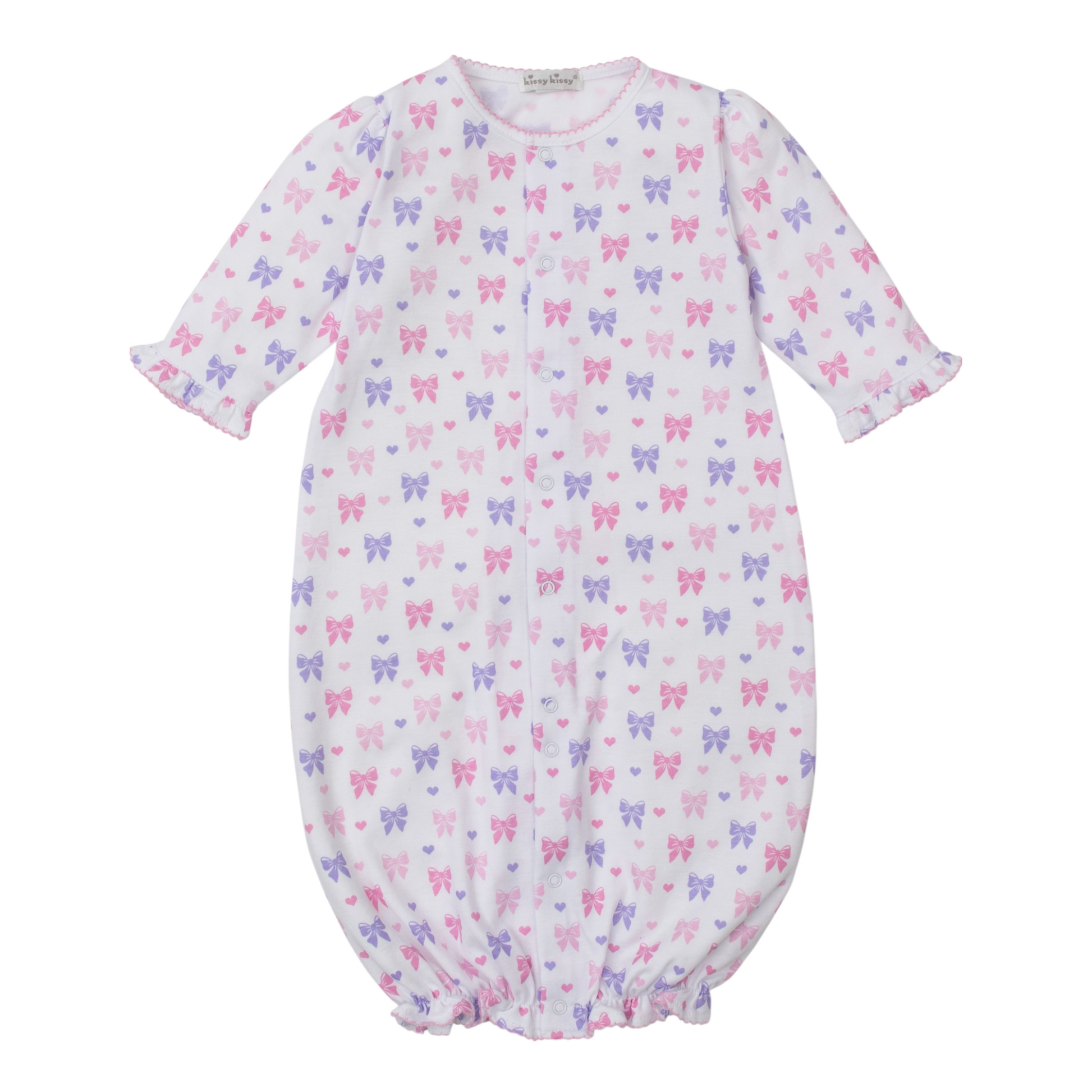 Tiny bows pattern this cozy convertible gown for your baby girl. Snaps on legs allow for easy conversion to playsuit; made from the softest Pima cotton for ultimate comfort.