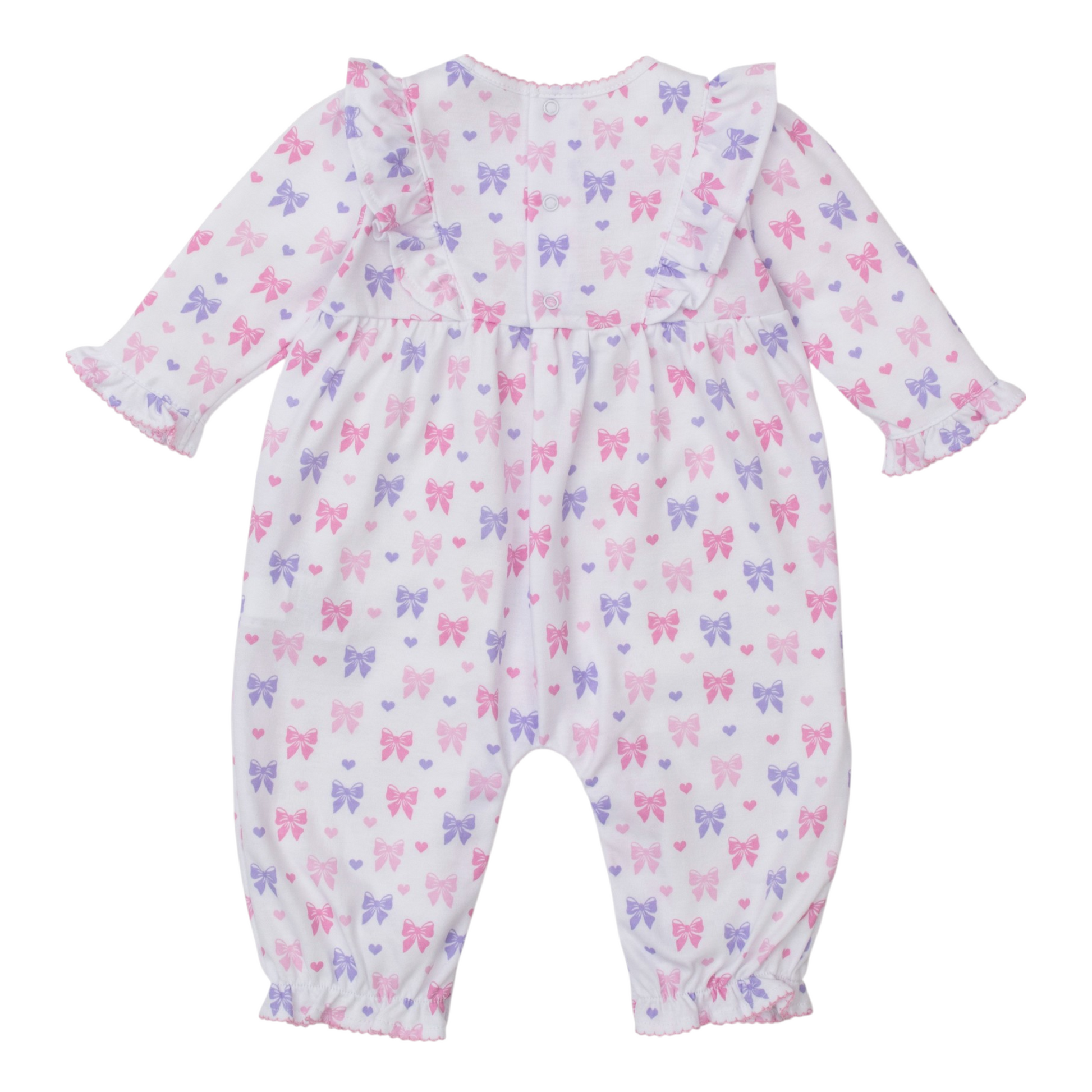 This luxury playsuit will wrap your sweet girl in comfort. Made from 100% pima cotton with an allover Billowy Bows print, it will feel oh-so-soft against delicate skin. Snaps make for easy changes.