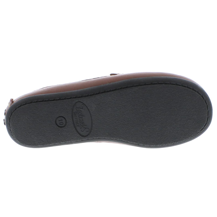 The Brooklyn is a leather moccasin loafer that features a slip-on closure. It will go perfectly with your child's dressy attire whether it's for church, a school program or seasonal pictures.