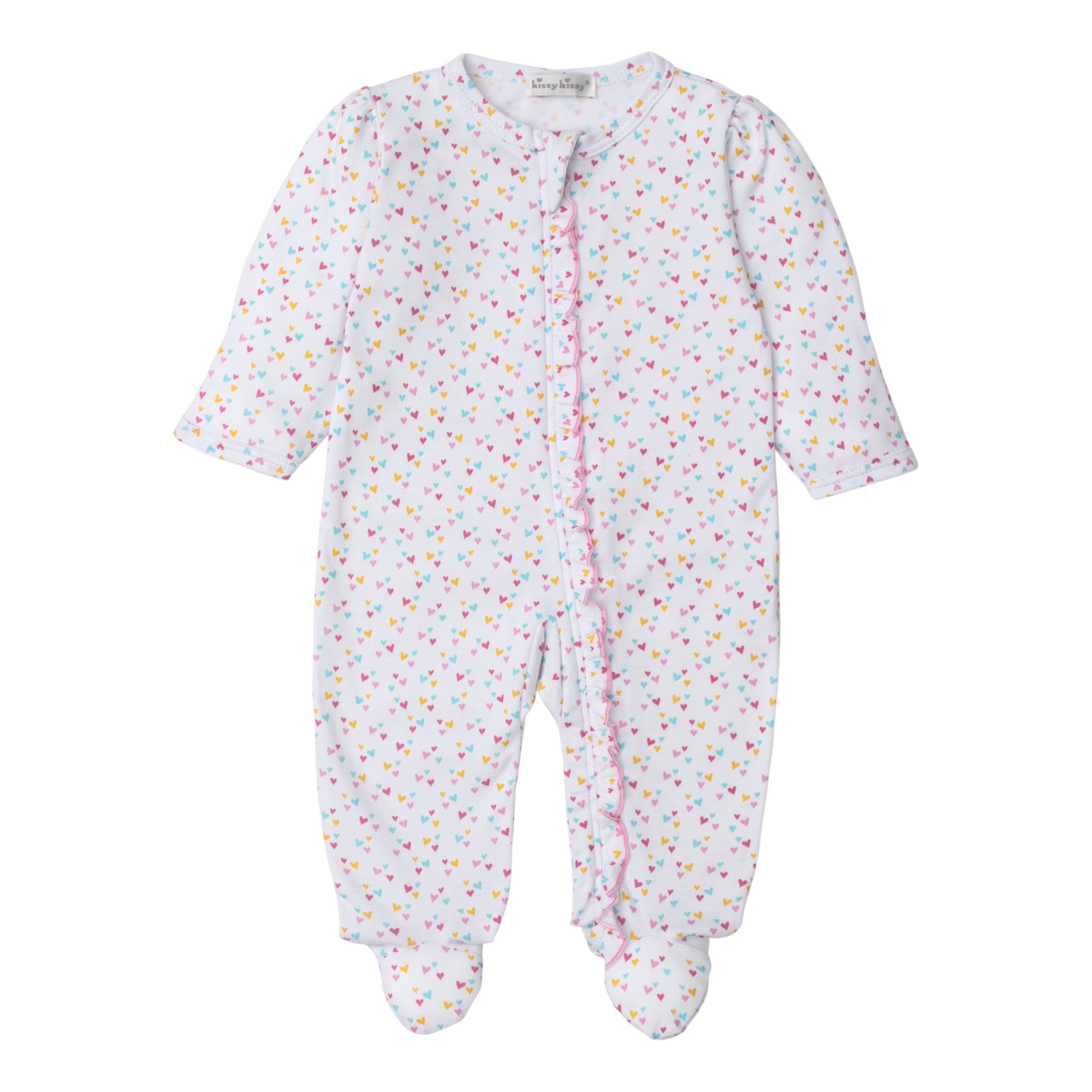 Patterned with hearts, our cozy zippered footie for your baby is made from the softest Pima cotton for ultimate comfort.