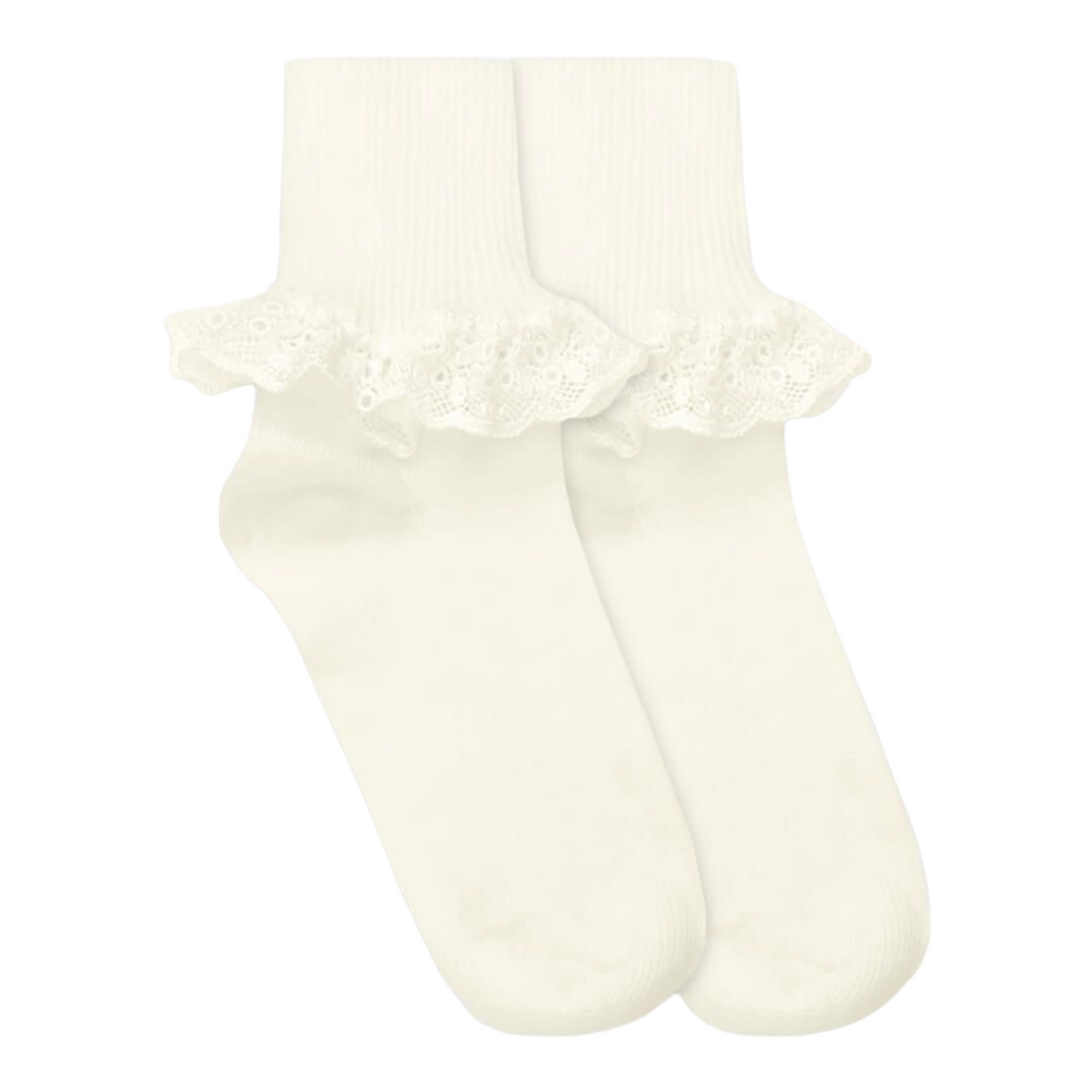 Must have girls lace turn cuff fold over socks. Perfect for dressing up, everyday, school, online school, church, Easter outfits, holidays, and Christmas outfits. Solid color socks go with all girls clothes and outfits. These delicate lace socks are perfect for your little princess. From toddlers to big girls, everyone loves to look pretty. Pair these with frilly dresses or denim skirts, they look great with everything! This Chantilly Lace sock is also a seamless toe! Look like a princess and feel like a queen in these socks!