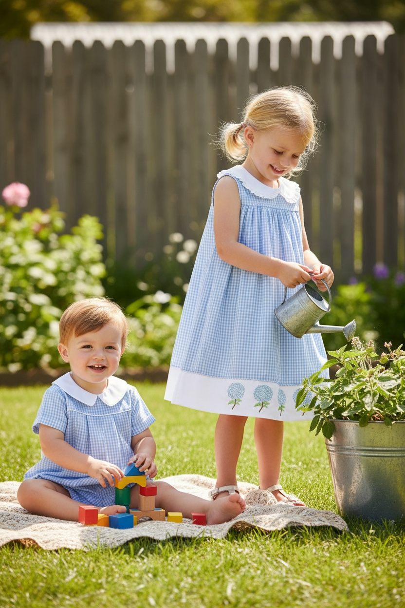 The Lt Blue Check Dressy Bubble Short features a fine plaid pattern in soothing shades of blue and white. Its tailored bubble shape and gentle pleating give it a polished finish. Lightweight cotton makes it ideal for springtime celebrations.