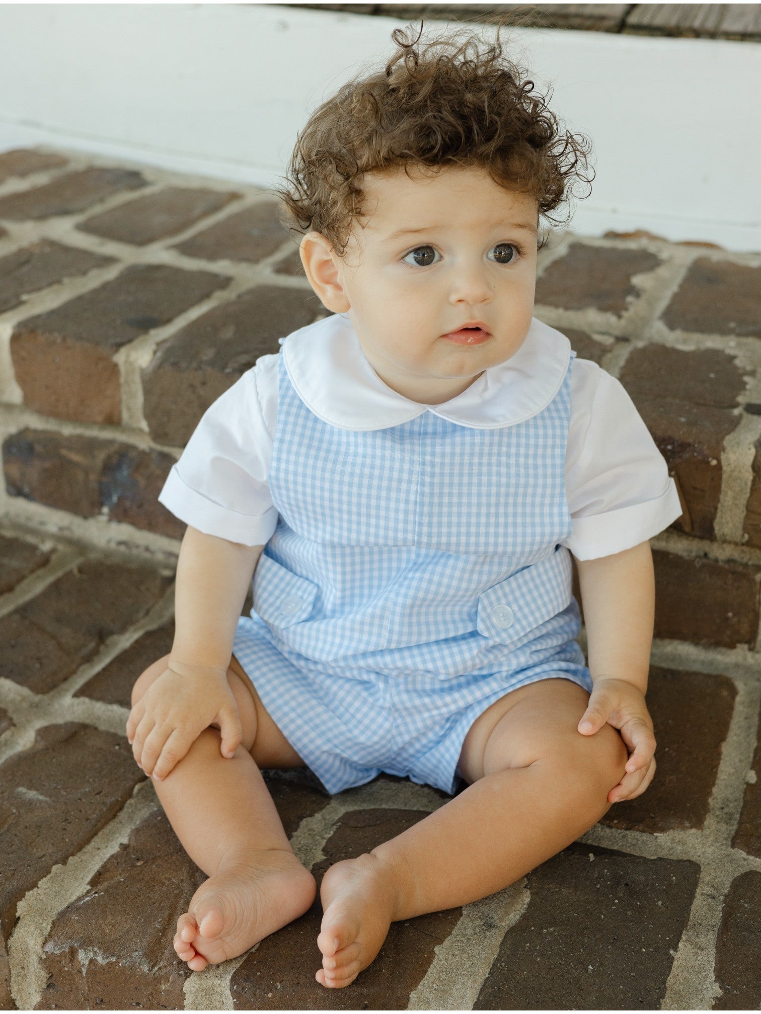 The Lt Blue Check John John with Tab is simple, traditional, and beautifully made. The light check pattern gives it texture and charm, while the structured shape keeps it timeless. A perfect warm-weather essential for little gentlemen.