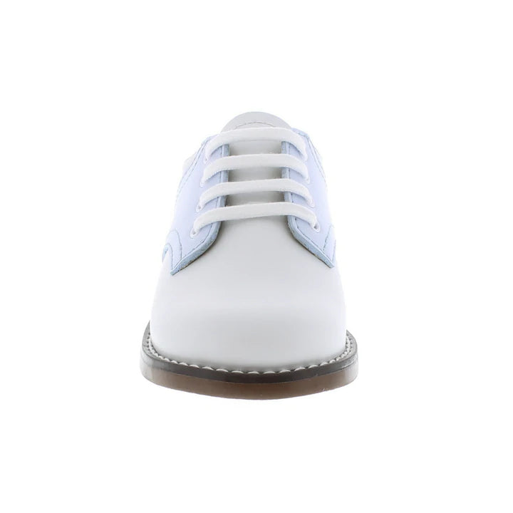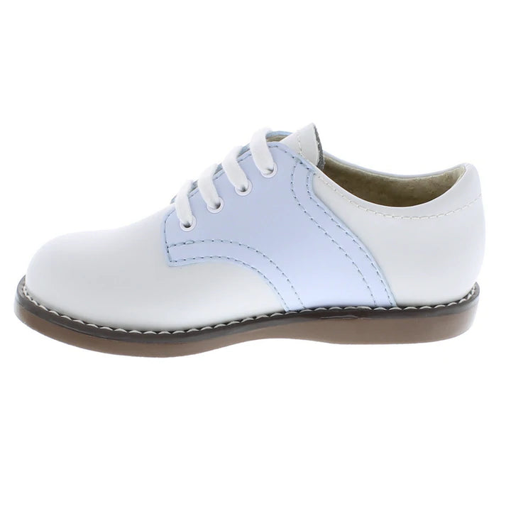 This classic two-tone blucher leather saddle oxford features a lace closure. It is perfect for casual outings or dressy events.