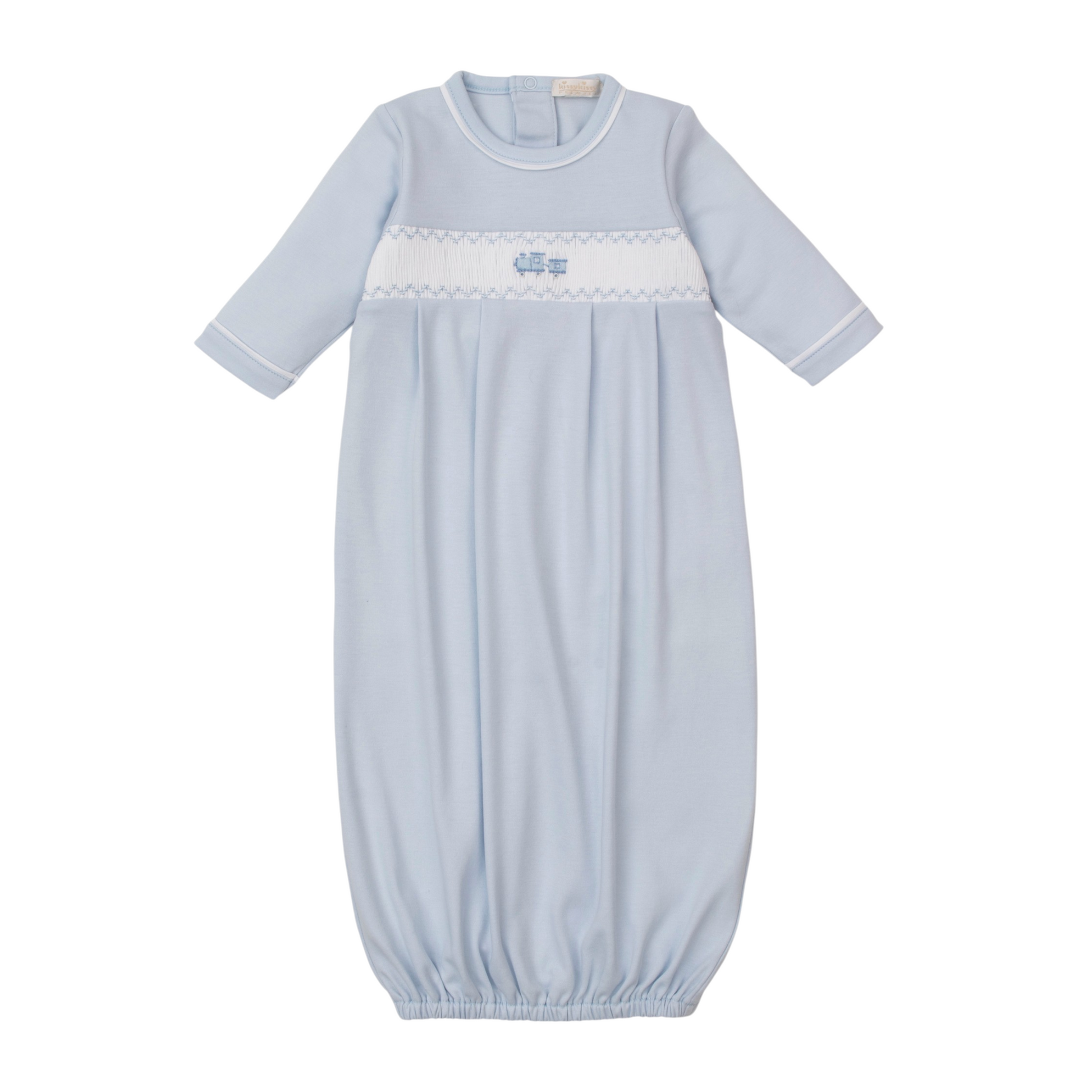 The softest, coziest sack gown is crafted from the finest Peruvian cotton, with delicate hand detailing and timeless design.