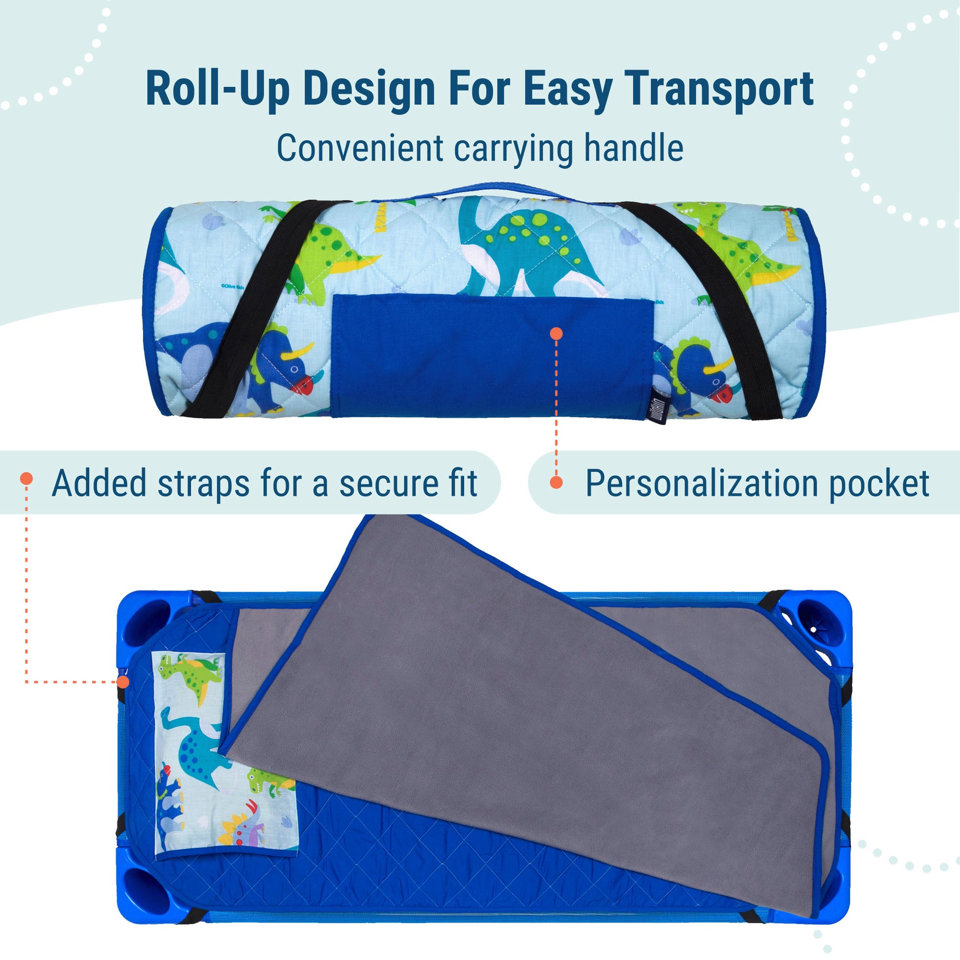 Wildkin’s Dinosaur Land Blue Modern Nap Mat was designed with daycare and preschool naps in mind. The Modern Nap Mat features elastic straps at each of the four corners that secure it to a daycare or preschool cot. The attached fleece blanket is oh-so-cozy and keeps your little one extra warm. Your little one’s naptime will be that much sweeter when they’re tucked inside the Modern Nap Mat.