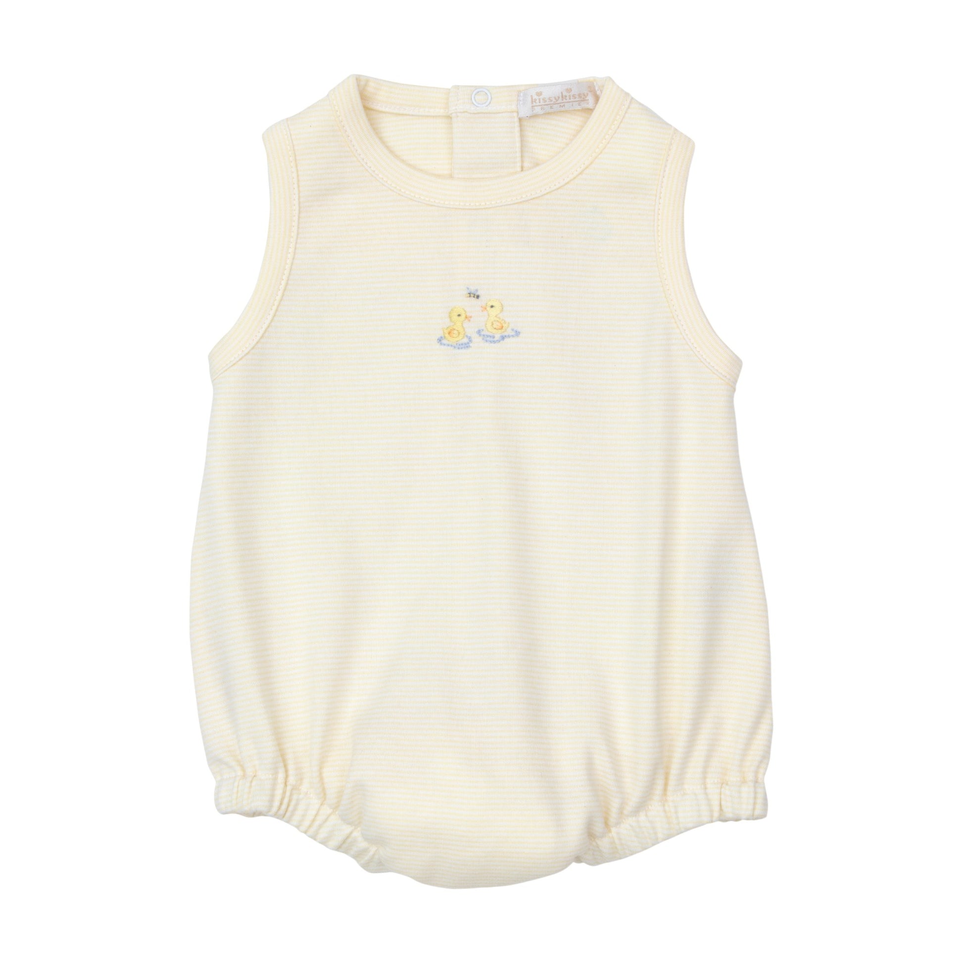 Fun duck themed embroidery adorns our yellow stripe bubble perfect your baby. Made from the softest Pima cotton for ultimate comfort.