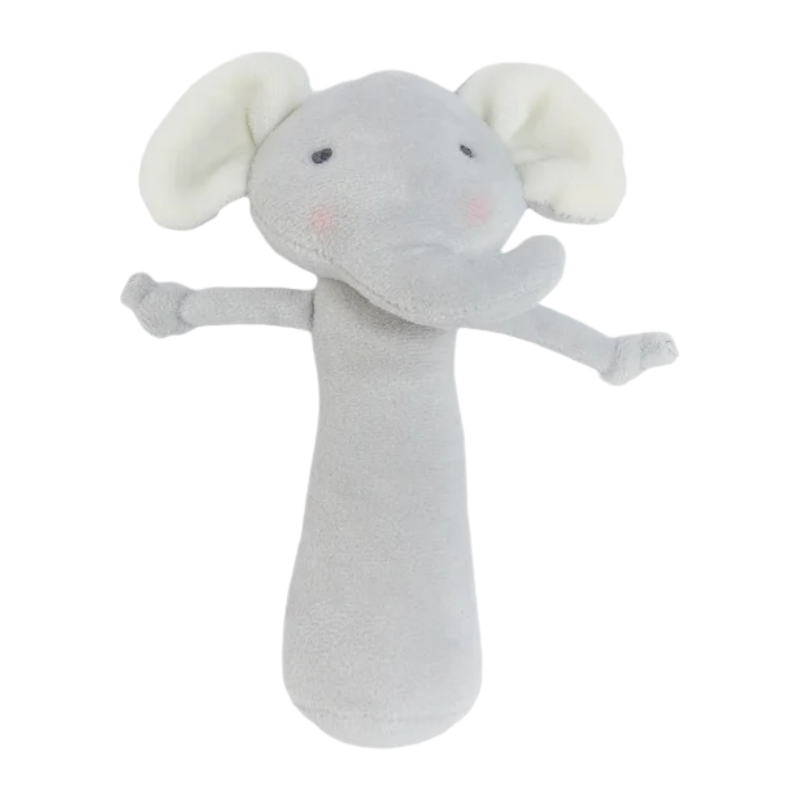 Friendly Chime Peanut is made of soft gray velour with adorably little elephant ears and trunk. With hand-embroidered details for a too-cute face, pinked cheery cheeks, and soft dangling arms for chewing and soothing.