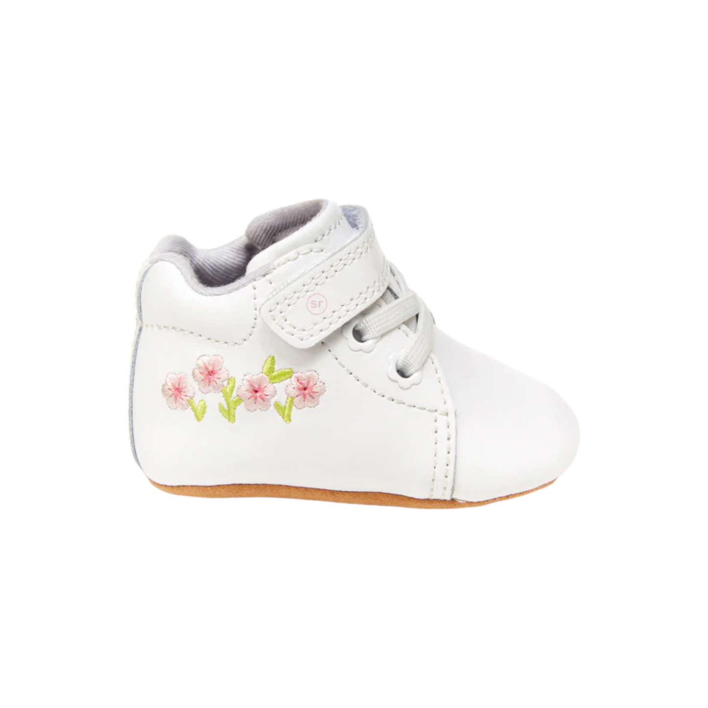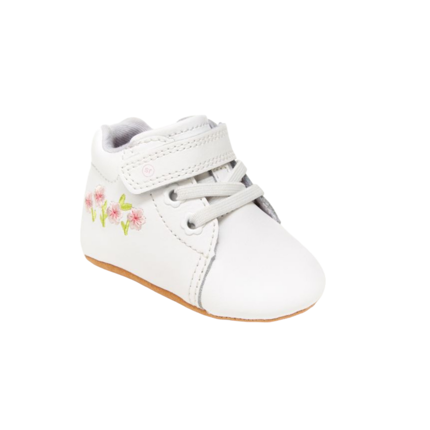 Let her first words be, “Mommy, you have excellent taste.” (Or Daddy, of course.) Stride Rite’s classic Emilia baby shoe features a premium leather upper with pretty floral embroidery and faux lace-up detail. The lightweight construction keeps her calm and comfy, while the oversized opening makes changing fuss-free.