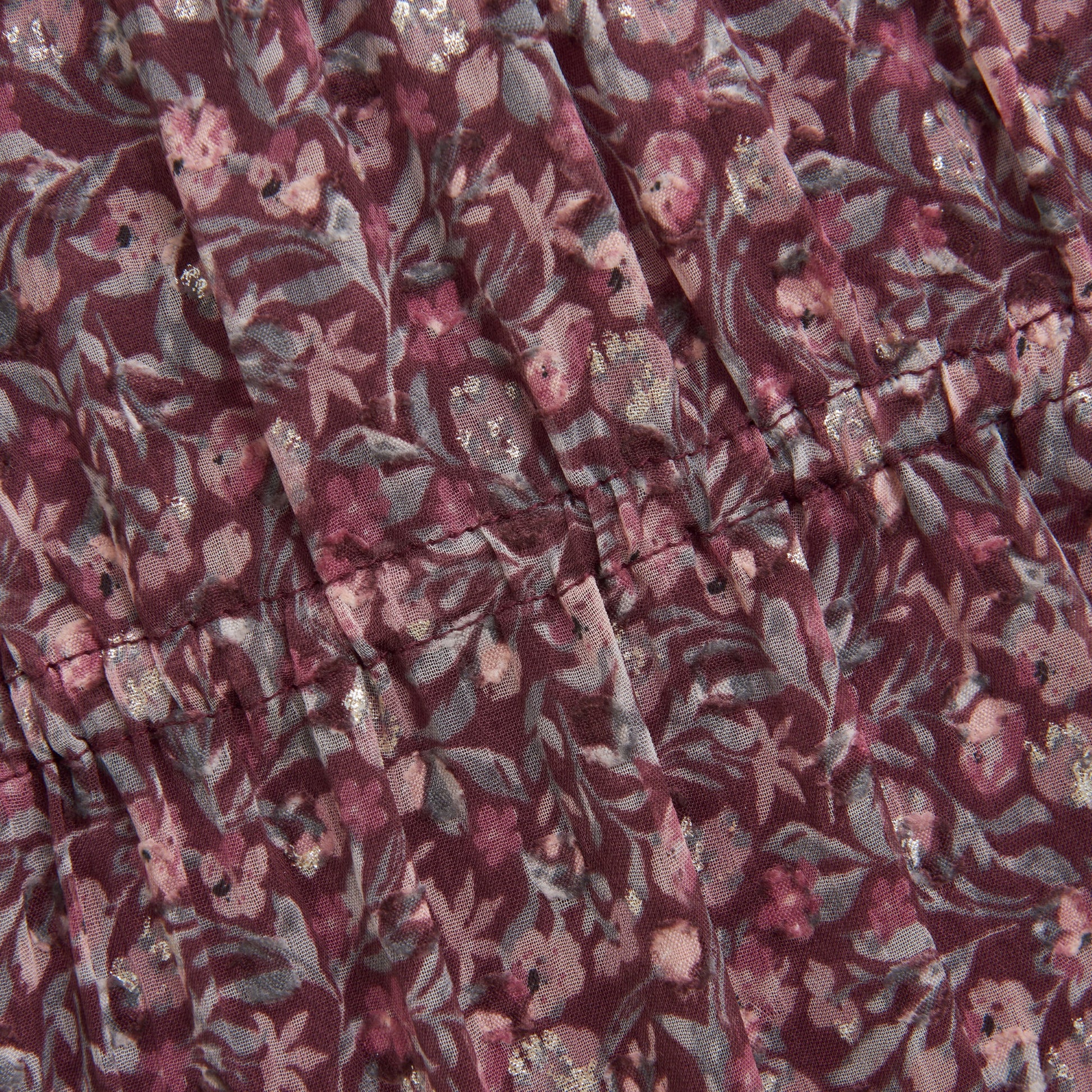 Beautiful long-sleeved all-over printed dress from Creamie. The print is with flowers and a little silver. The dress has seams that give a wrinkle effect. It has a seam from the chest, from which the skirt falls nicely with just a bit of width. The sleeves are semi-transparent and the rest of the dress consists of two layers, where the inner one is in a tightly woven cotton quality, so that it does not appear transparent.