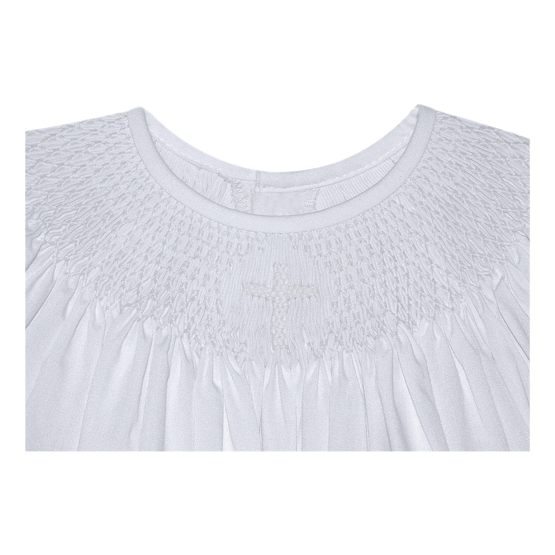 Smocking with Hand embroidered cross detail on chest