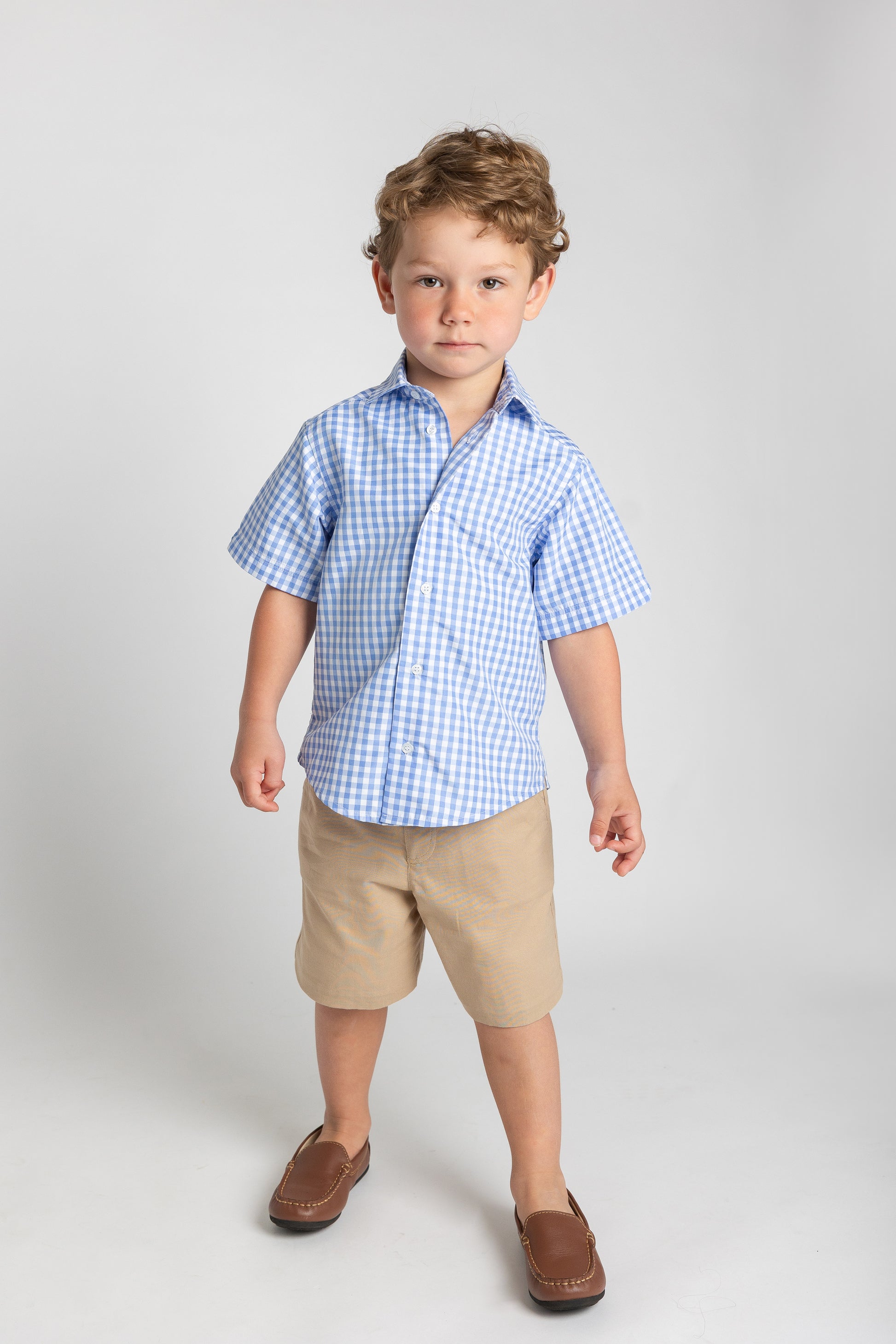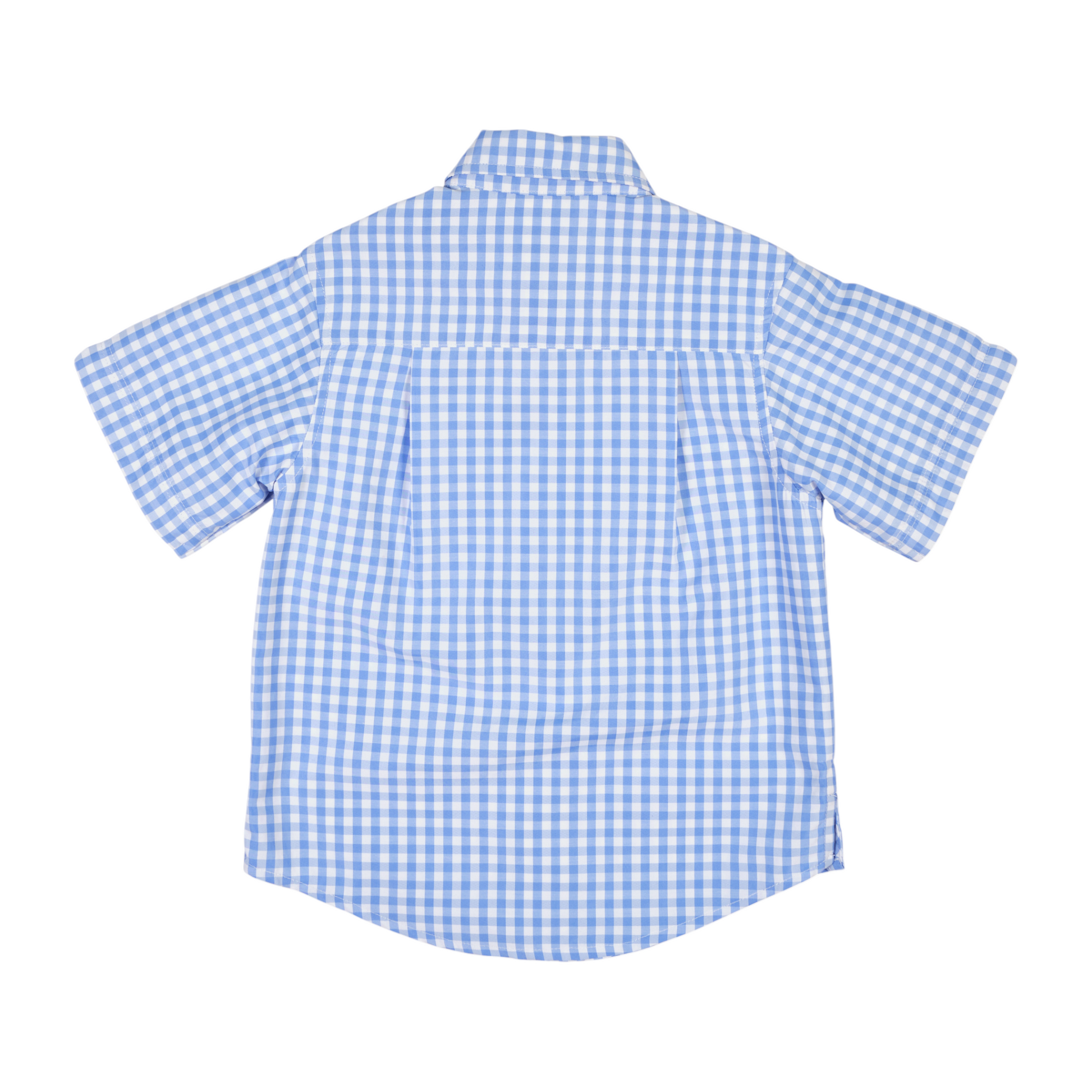 A warm-weather classic, this camp shirt is crafted from lightweight blue and white gingham poplin for a crisp, breathable feel. Short sleeves and side vents keep it cool and comfortable, while a button-front closure adds timeless polish.