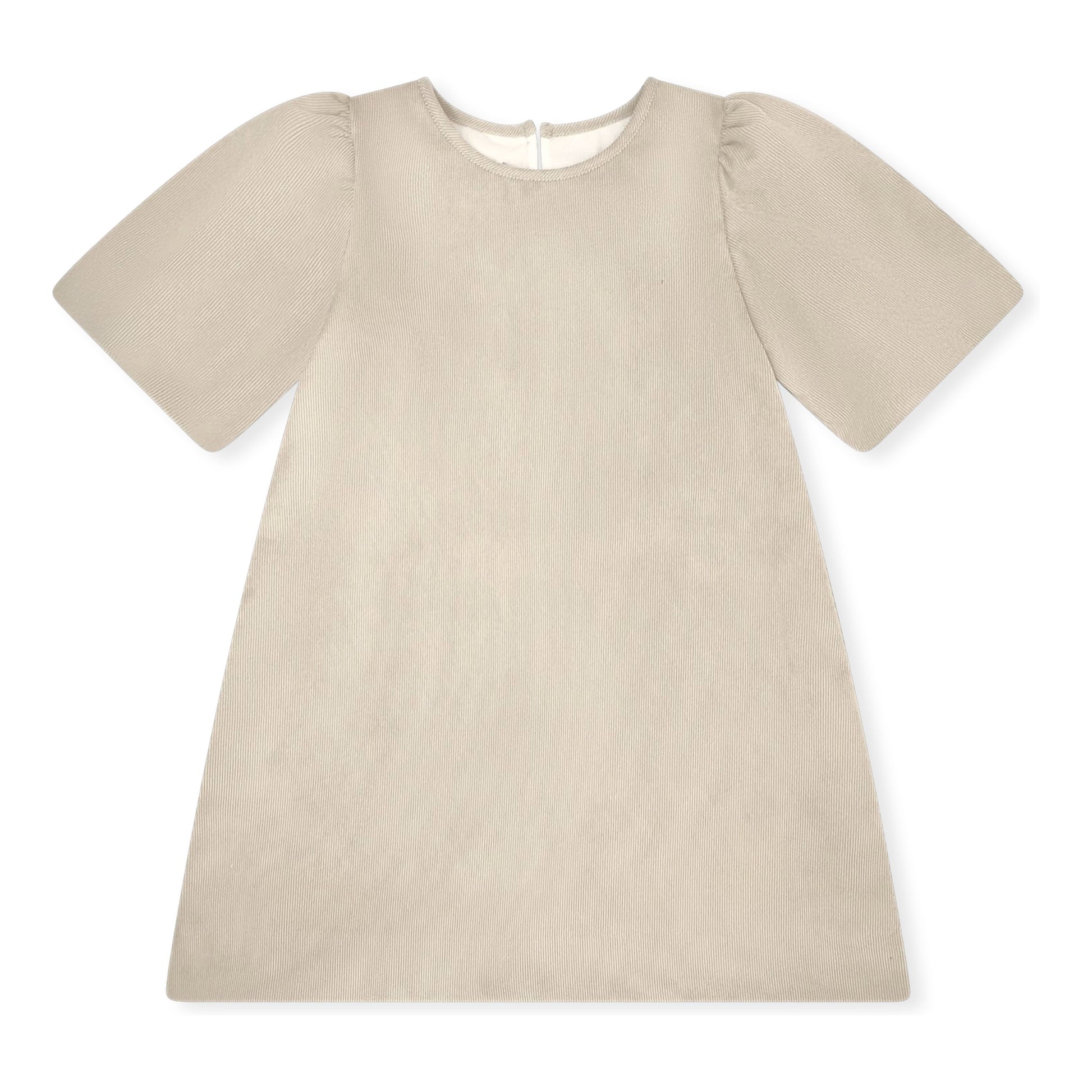 Classic and cozy, the Hallie Dress is crafted in soft Alexandria Khaki corduroy. Featuring charming puff sleeves and a timeless silhouette, this dress is perfect for layering over blouses or wearing on its own. Ideal for everyday adventures or special occasions, it combines comfort with understated elegance.