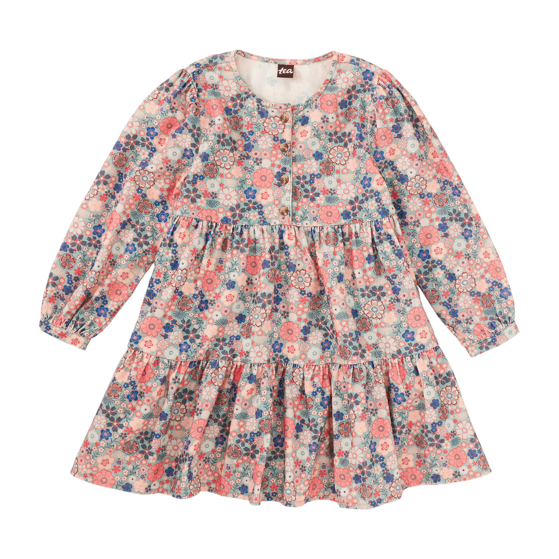 A timeless piece with modern charm, this corduroy shirtdress is designed to be cherished and passed down. The soft floral print, blouson sleeves, and tiered skirt bring a touch of elegance, while practical details like side seam pockets and a functional placket keep it easy for everyday wear. Great for fall family photos--this is a true heirloom dress to treasure.