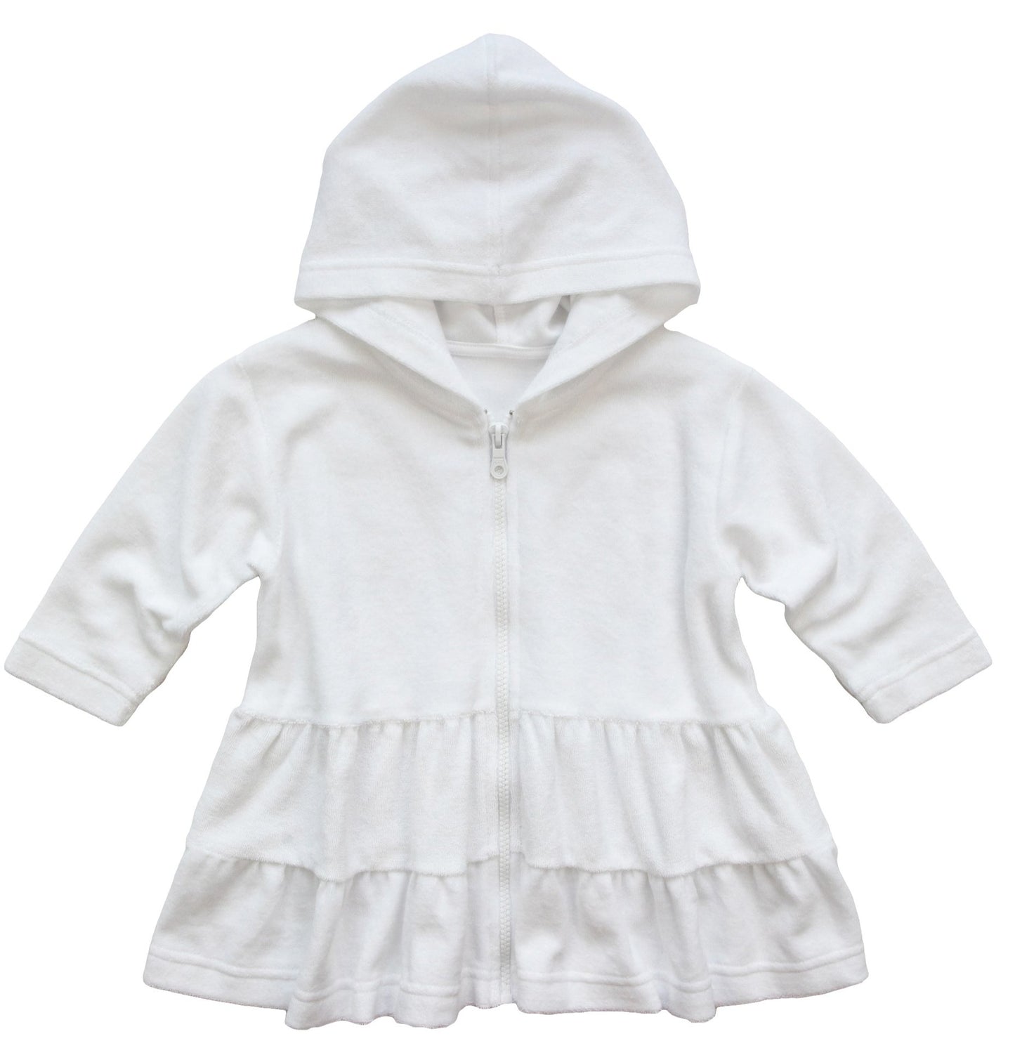 Cozy white terry cloth will keep your little one warm after a dip in the pool. Featuring long sleeves, hood, kangaroo pocket and a zip front, it's an easy cover-up for girls or boys.