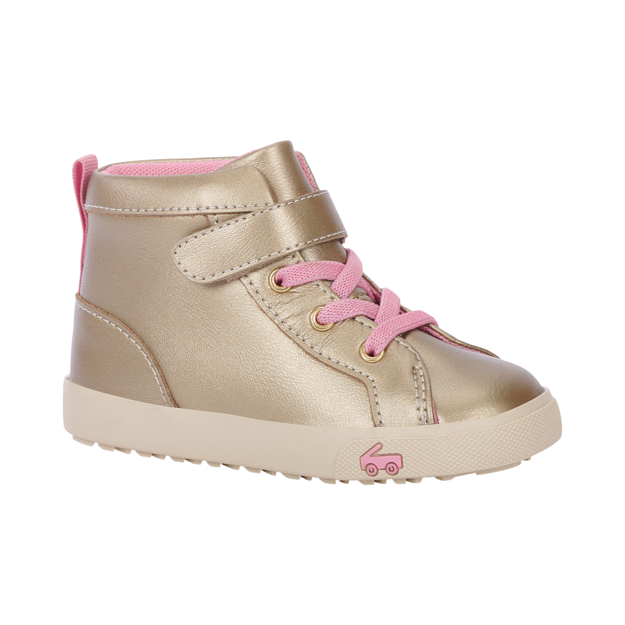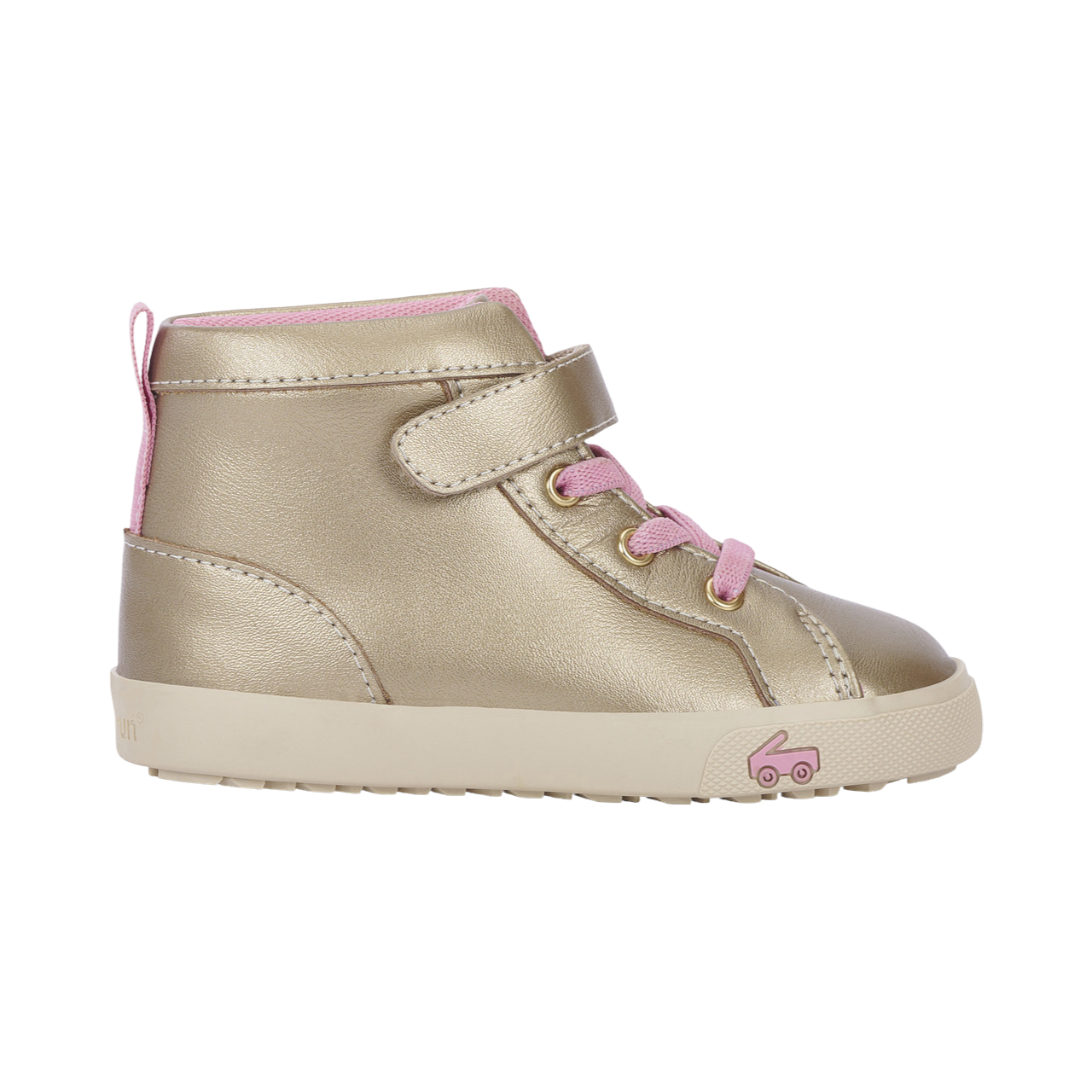 Make a statement with every step in our Hudson high top. Beyond the shimmering gold leather, this sneaker/boot hybrid provides breathability on the inside, flexibility on the outside, and maximum comfort, making it the ultimate all-occasion pair.
