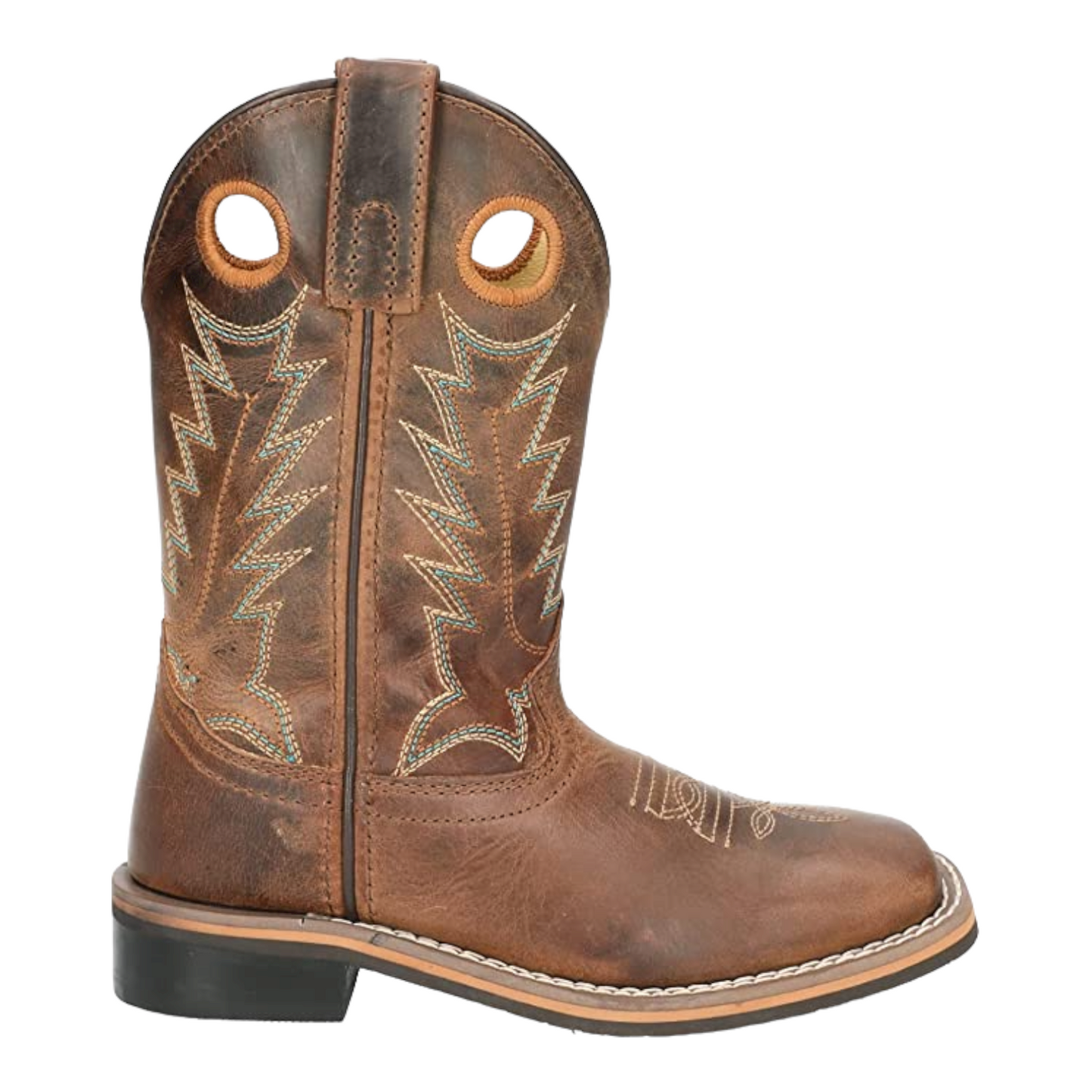 Smoky Mountain Boots Jesse series are pull on children’s western boots that feature a square toe with a block heel. Perfect for your special little cowboy or cowgirl. Kids will enjoy playing while wearing these boots made of genuine leather. Let your little one’s experience comfort as they take on amazing adventures. The boots include a rubber sole, a comfortable block heel, man-made lining and vintage leather. This stylish footwear is available in various sizes.