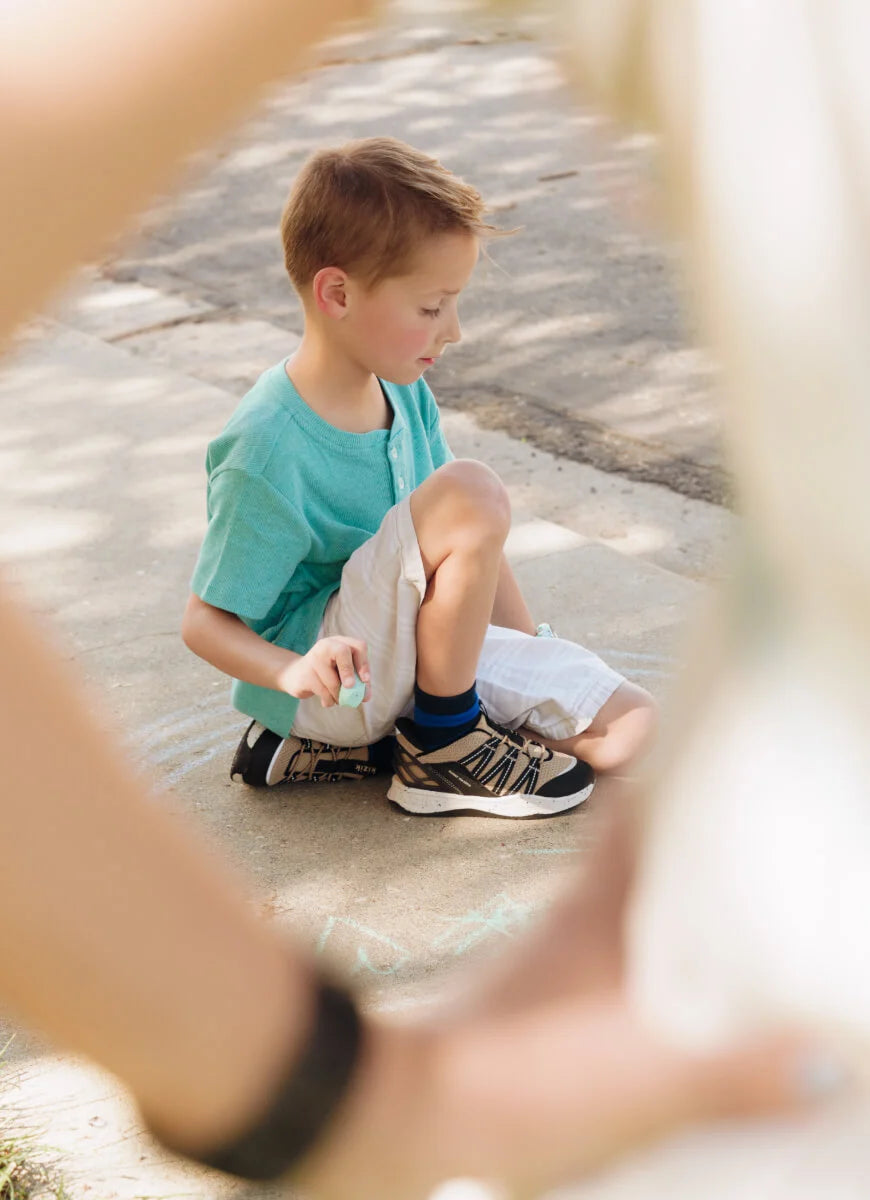 This little guy's tough. Meet the Truckee, a rugged kids' shoe that lets your child's imagination run wild. Its effortless step-in and durable design will hold up to all types of play.