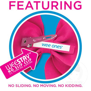 Our biggest bow fans love our King bows! Made to be the statement piece to her outfit, this grosgrain bow is available in 26 colors, and features a larger version of our patented WeeStay No Slip Clip. Great for older girls too, this is THE BOW to stand out from the crowd in the playground!