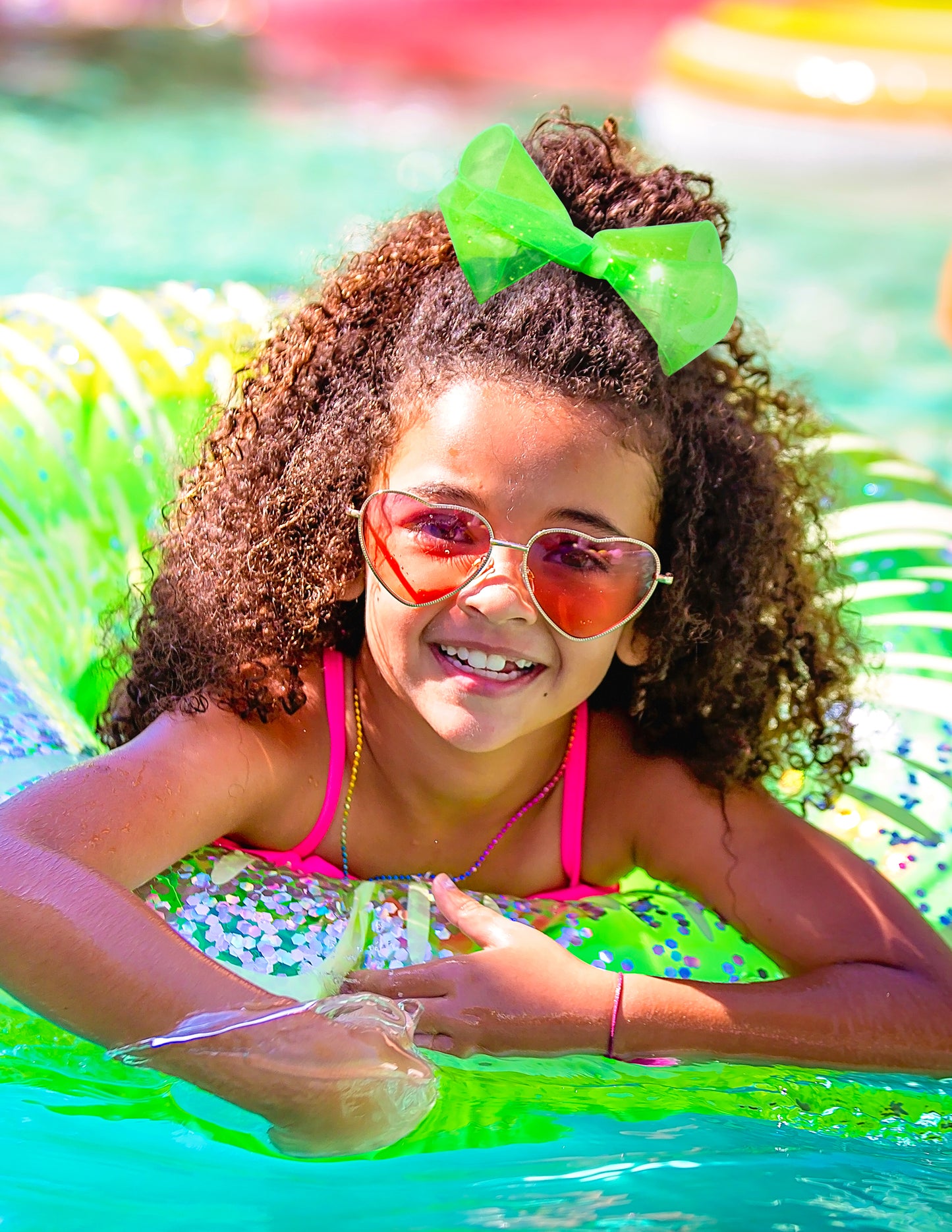 Make waves splashing around at this summer's pool party with our vibrant-colored king vinyl hair bow for girls. This bow is sure to stay in her hair all day with our patented WeeStay™ no-slip hair clip. This is the perfect hair bow to capture those summer time insta shots!