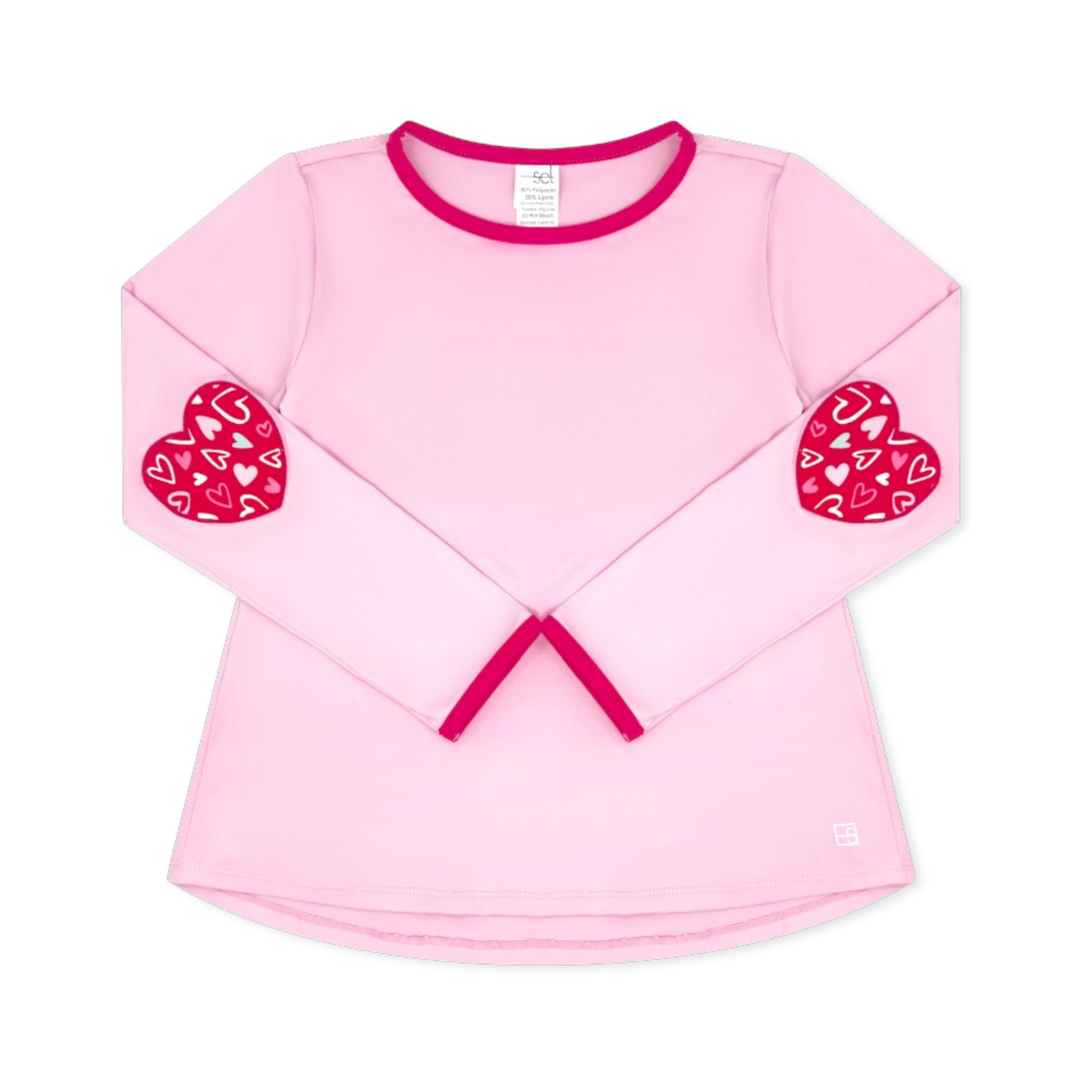 A basic but better, our Kylie Long Sleeve Tee is always accompanied by a fun elbow patch. This tee in Cotton Candy Pink with Pink Promise heart elbow patches goes perfectly with everything in our Pinky Promise collection.