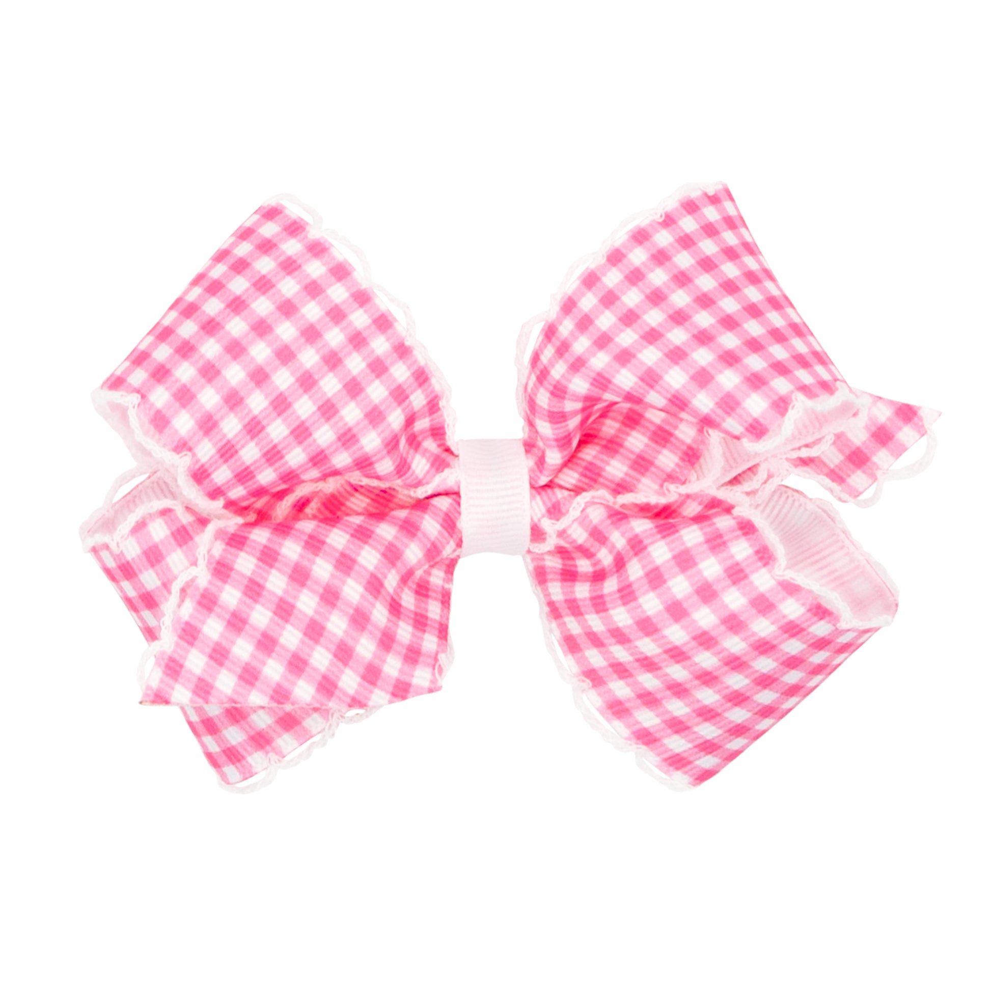 Wee Ones Medium Gingham Printed Grosgrain Bow With Moonstitch Edge