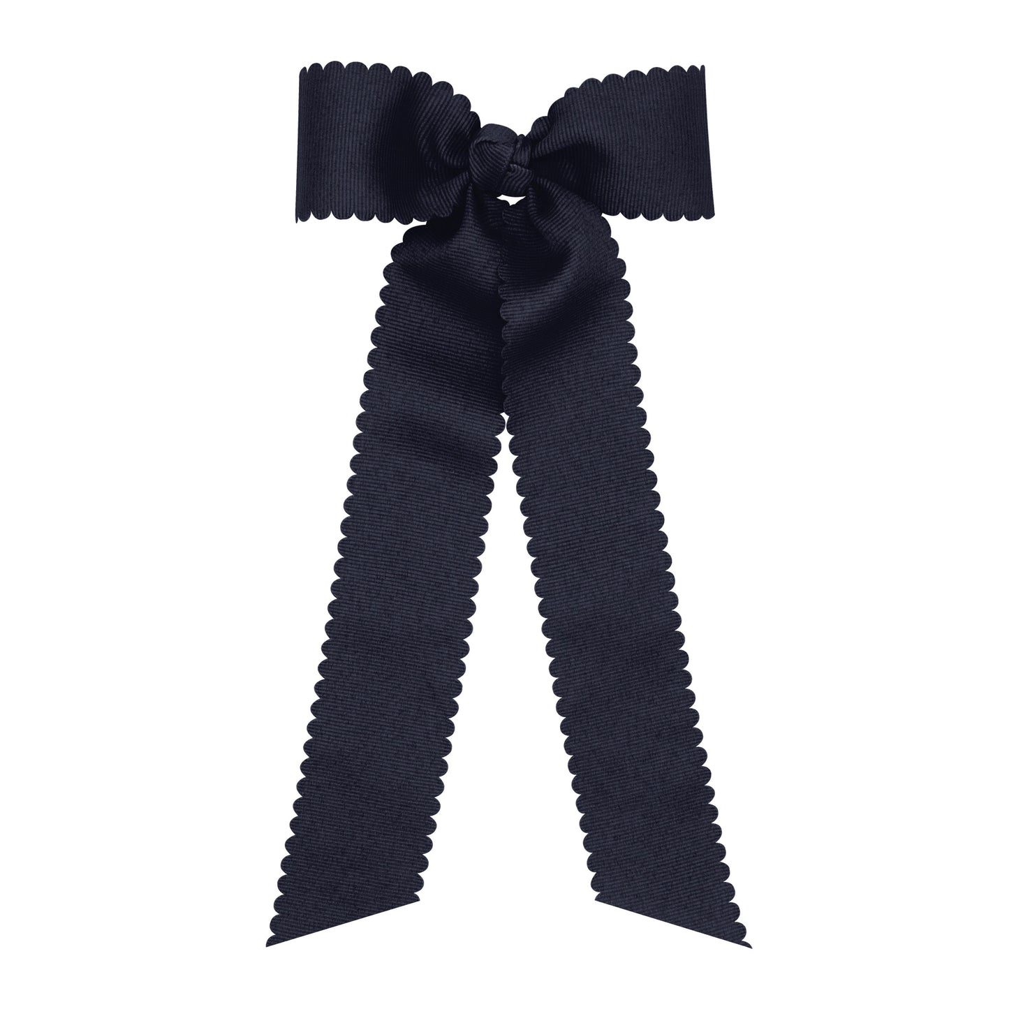 This medium grosgrain bowtie with scalloped edges, knot wrap and 9 inch streamer tails combines two of our most popular trends. This bow is sure to stay in her hair all day with our patented WeeStay™ no-slip hair clip. It's perfect for girls of all ages.
