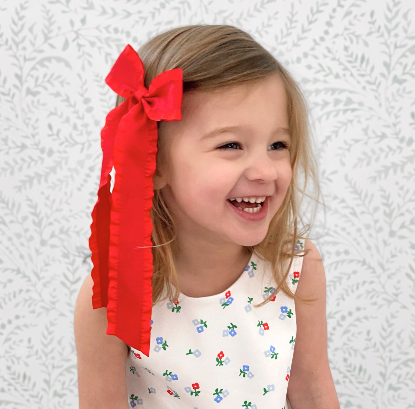 Wee Ones Ruffle-Edge Taffeta Bowtie With Knot Wrap And Streamer Tails