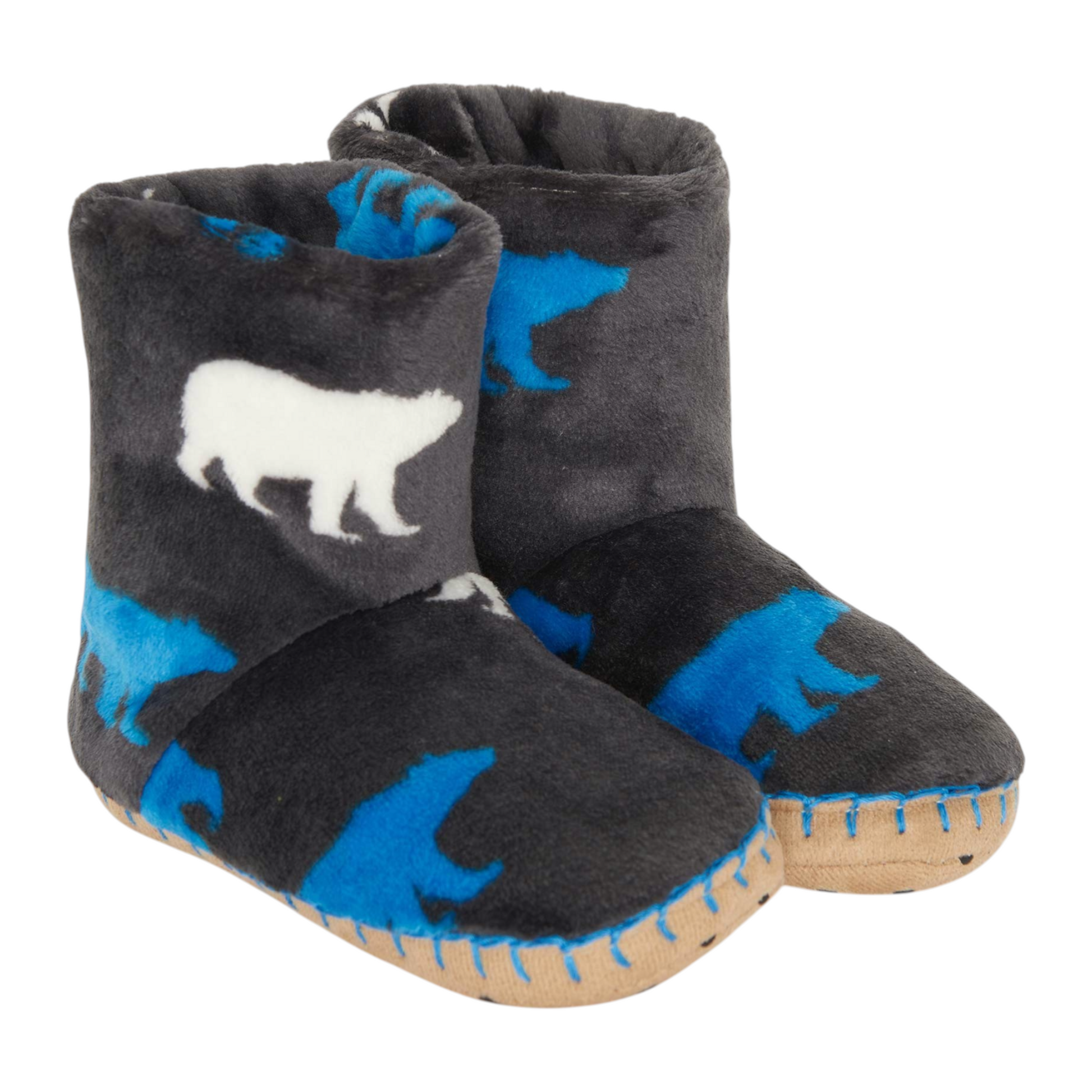 Hatley Polar Bear Silhouette Fuzzy Fleece Slippers