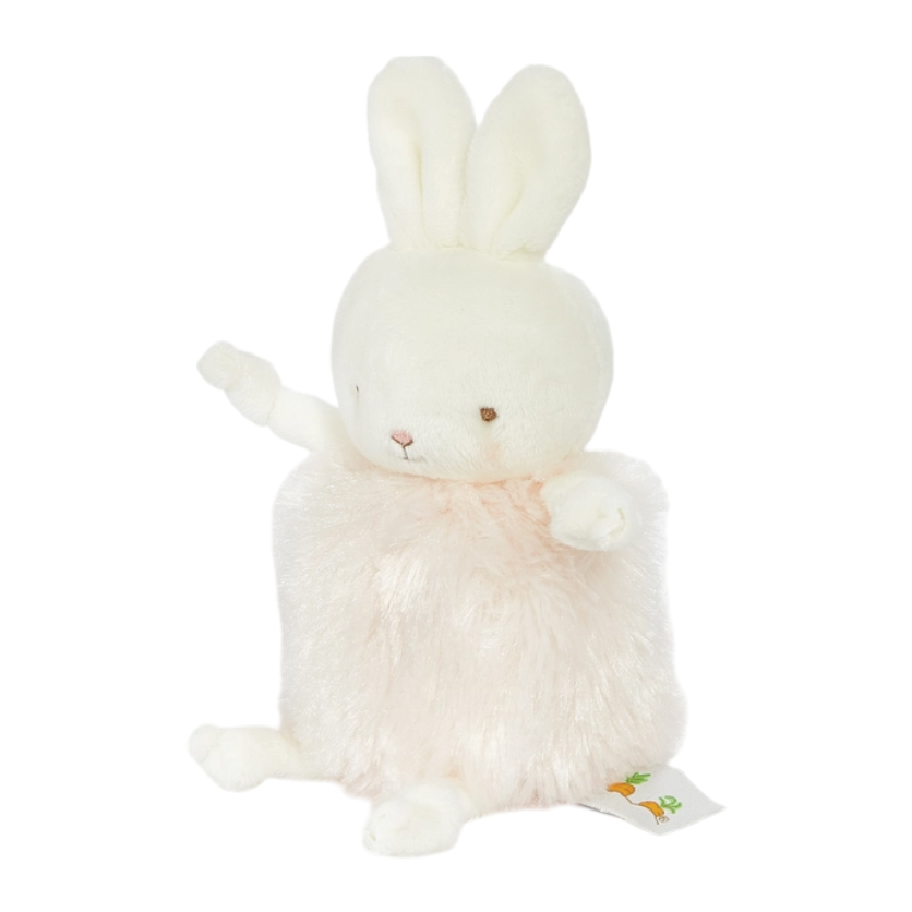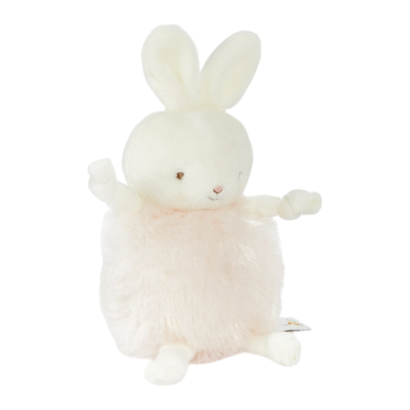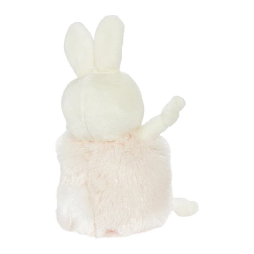 Our teeniest new stuffed animal friends happily fit in the tiniest hands. This is a fluffy, round, pink furred stuffed bunny with velour face and dangly arms and legs. Features embroidered faces and our signature blushed cheeks.