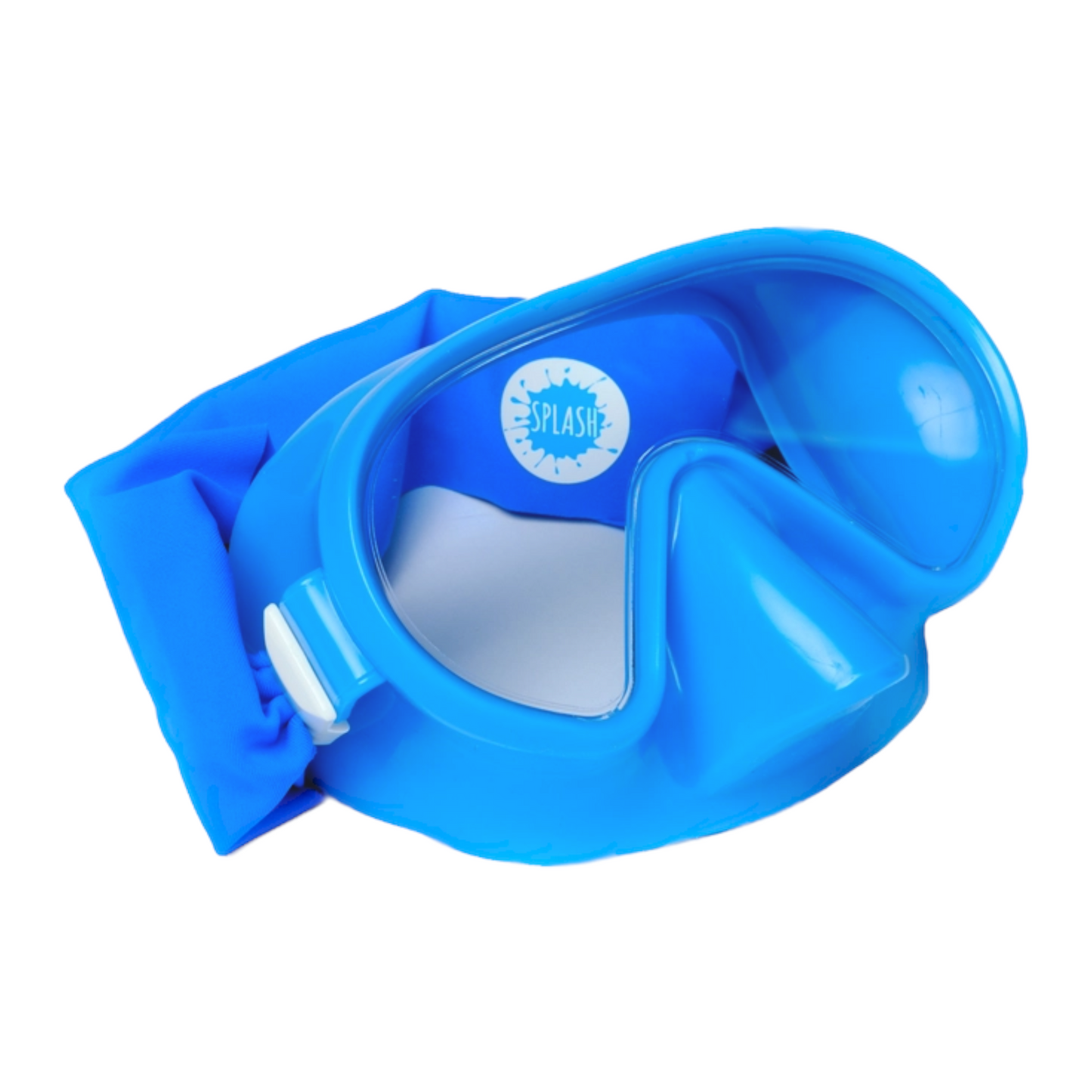 Our Royal face mask swim goggle features our tangle-free, patent-pending strap in a solid matte blue, paired with a blue frame and clear lenses.