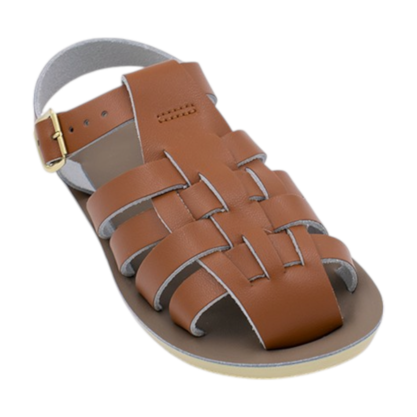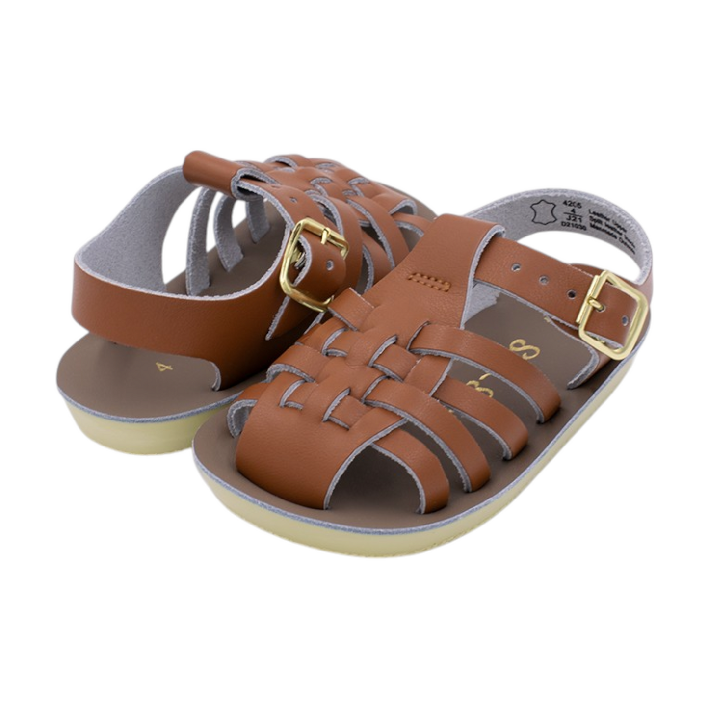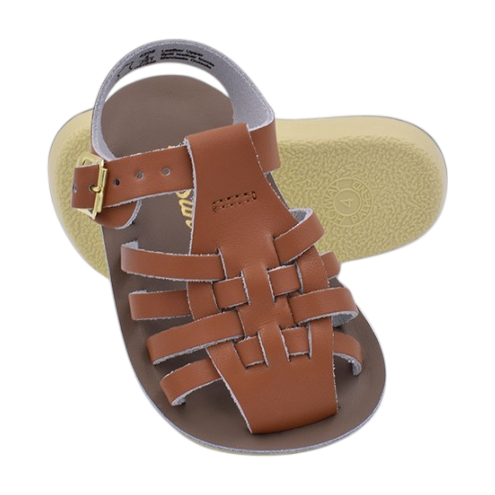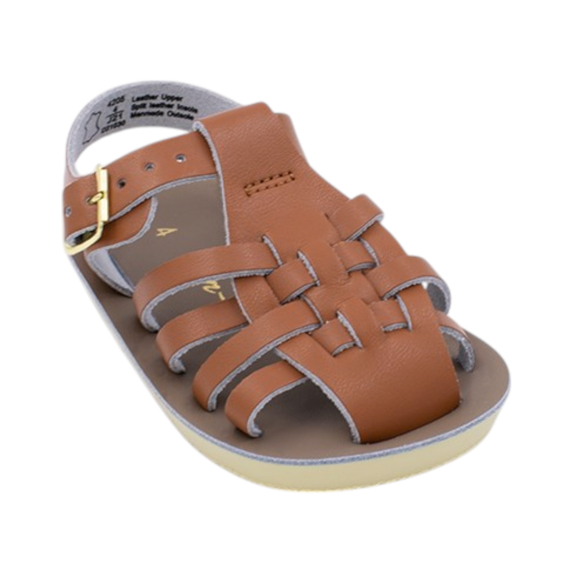 The Sun-San Sailor has a wider fit, cushioned lightweight sole and closed-toe design, making them perfect for babies learning to walk and little ones alike. Our unique scuff-resistant, water-friendly genuine leather combined with an adjustable strap creates a comfy and secure sandal.