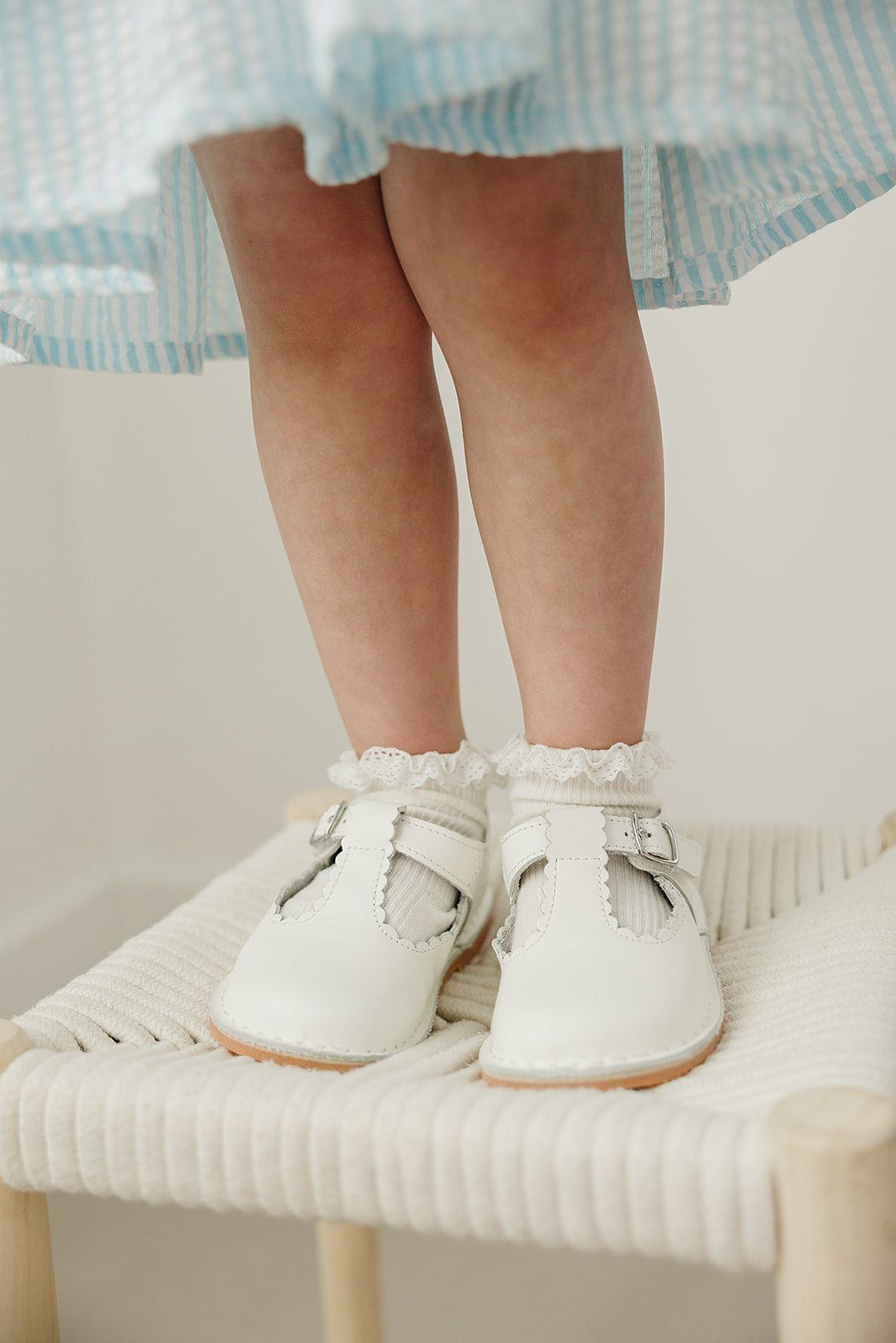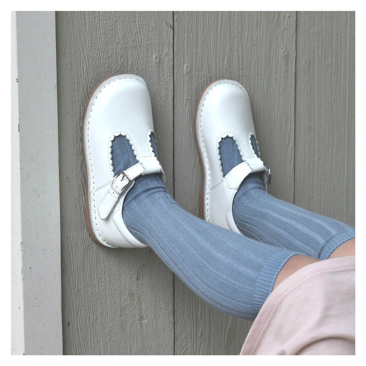 Scalloped t-strap with velcro closure (buckle accent)