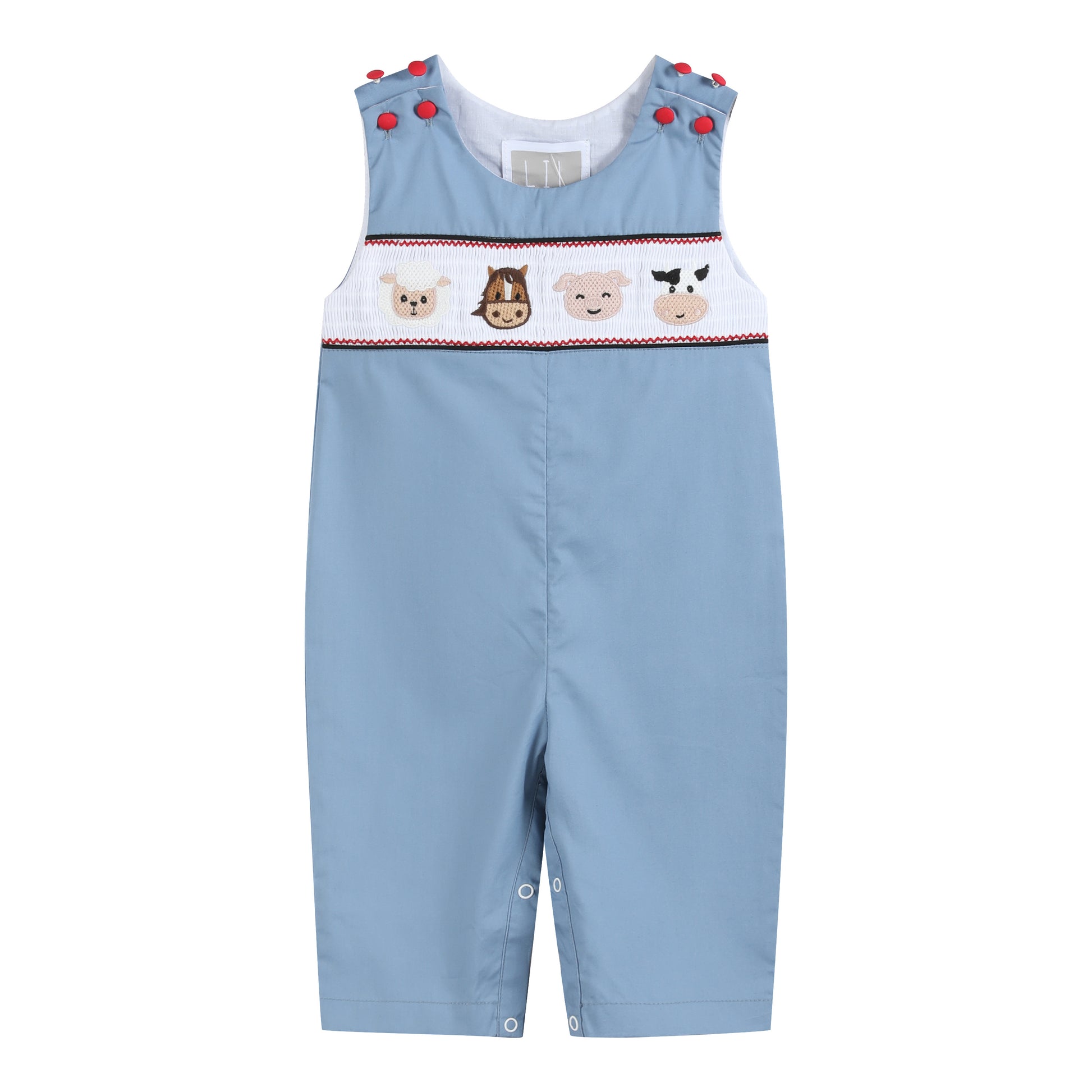 Get your little farmer ready for fun with our Blue Farm Animals Smocked Overalls! These adorable overalls feature a smocked panel with beautifully embroidered farm animals, bringing a touch of countryside charm to your baby’s wardrobe. Designed for practicality and comfort, they include coordinating buttons at the shoulders for adjustable sizing and convenient snaps for easy diaper changes. Perfect for infants, babies, and toddlers up to 2T, they're great for farm-themed adventures or everyday play!