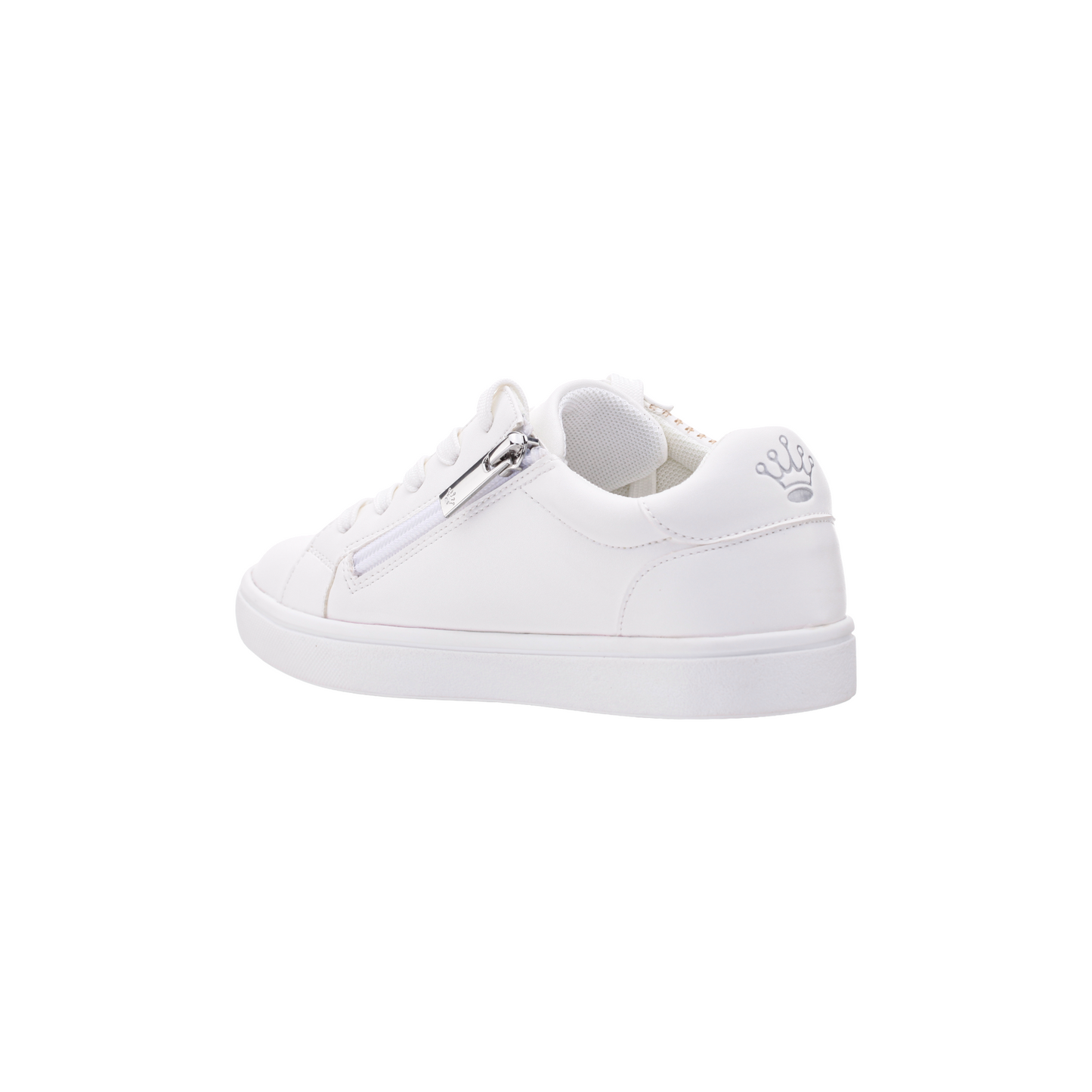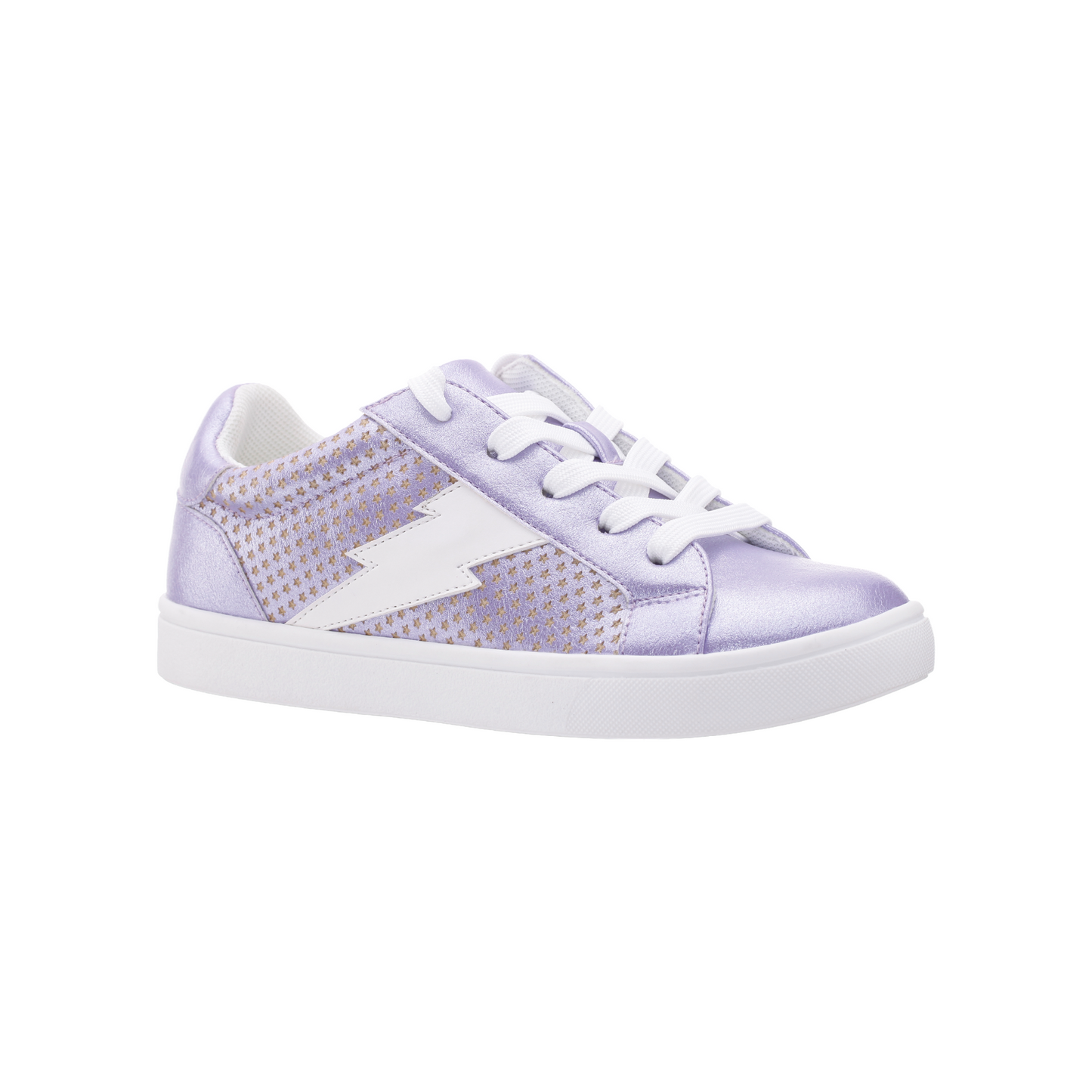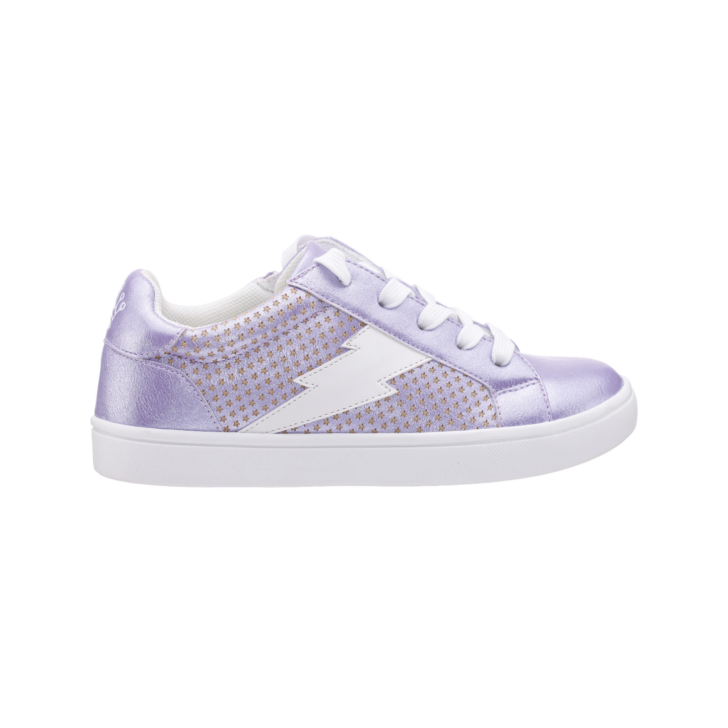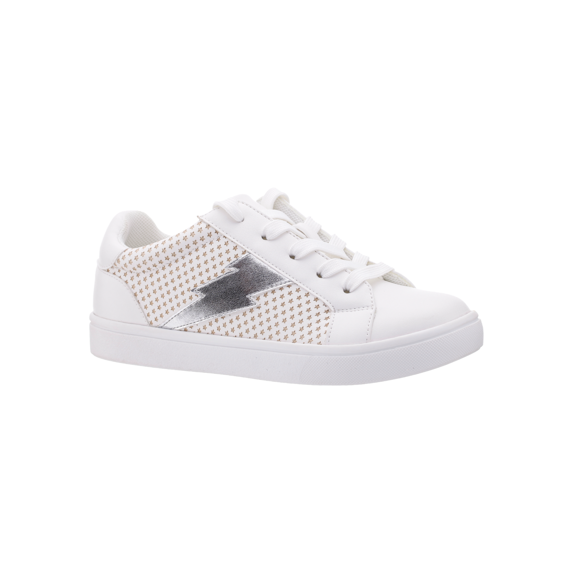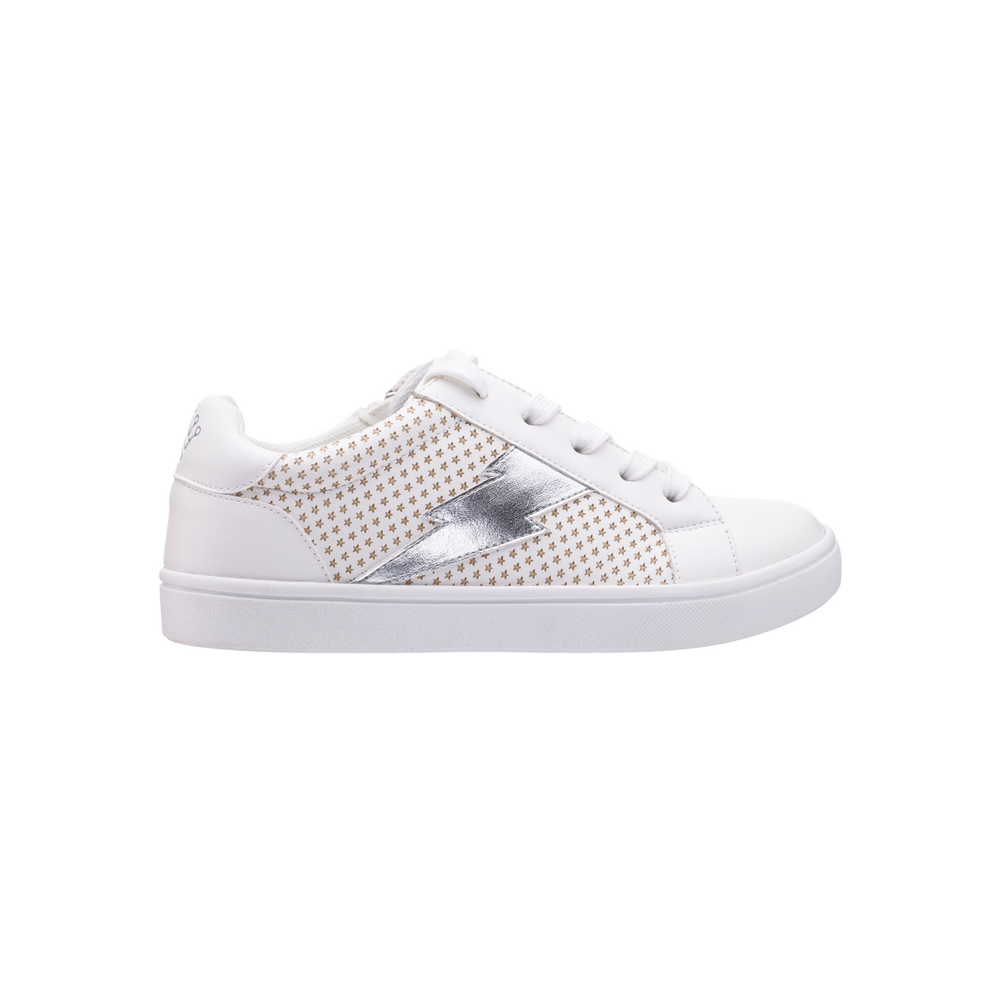 This lace-up sneaker with padded upper and inside zipper features a striking thunderboldt applique, adding a bold and fashionable statement to your little one's footwear collection.