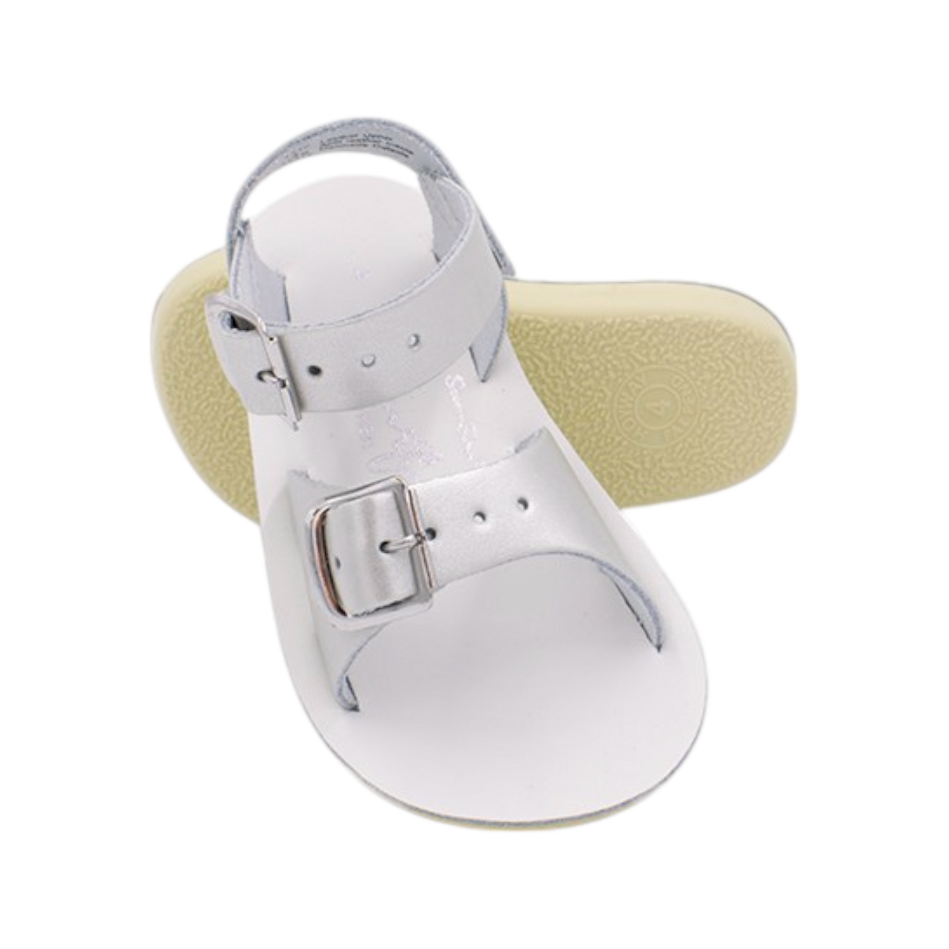 The Sun-San Surfer is a classic two-strap sandal that’s perfect for younger feet. An adjustable toe buckle and ankle strap make them great for both wide and narrow feet. Wear them comfortably all day long — thanks to the lightweight, cushioned urethane sole. Rust-proof brass buckles and scuff-resistant water-friendly genuine leather make them ideal for in-and-out-of-water wear. They clean up so easily and with proper care, they will last for years.
