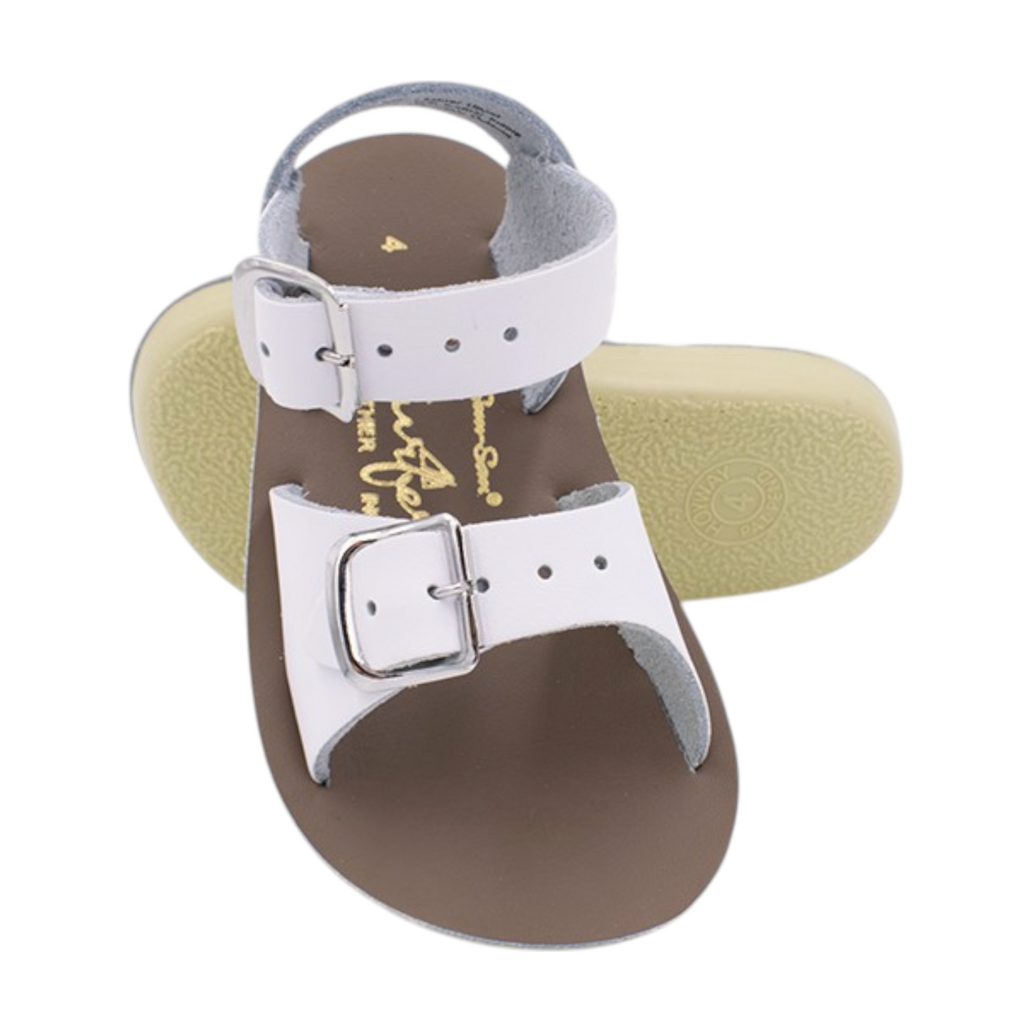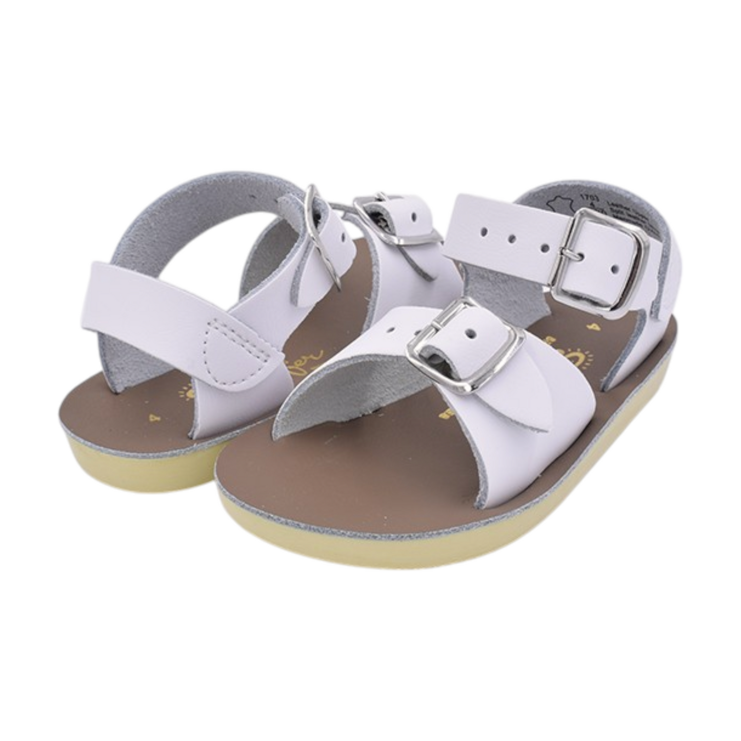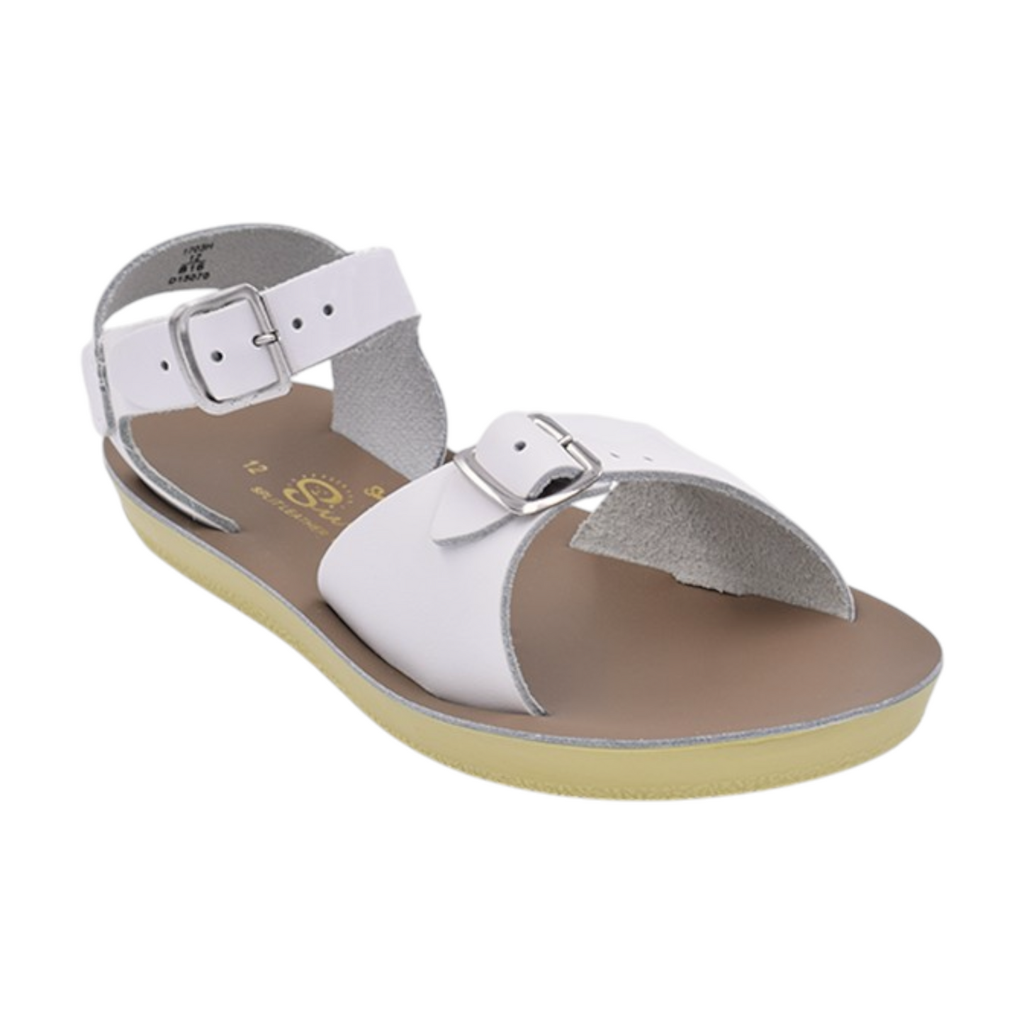 The Sun-San Surfer is a classic two-strap sandal that’s perfect for younger feet. An adjustable toe buckle and ankle strap make them great for both wide and narrow feet. Wear them comfortably all day long — thanks to the lightweight, cushioned urethane sole. Rust-proof brass buckles and scuff-resistant water-friendly genuine leather make them ideal for in-and-out-of-water wear. They clean up so easily and with proper care, they will last for years.