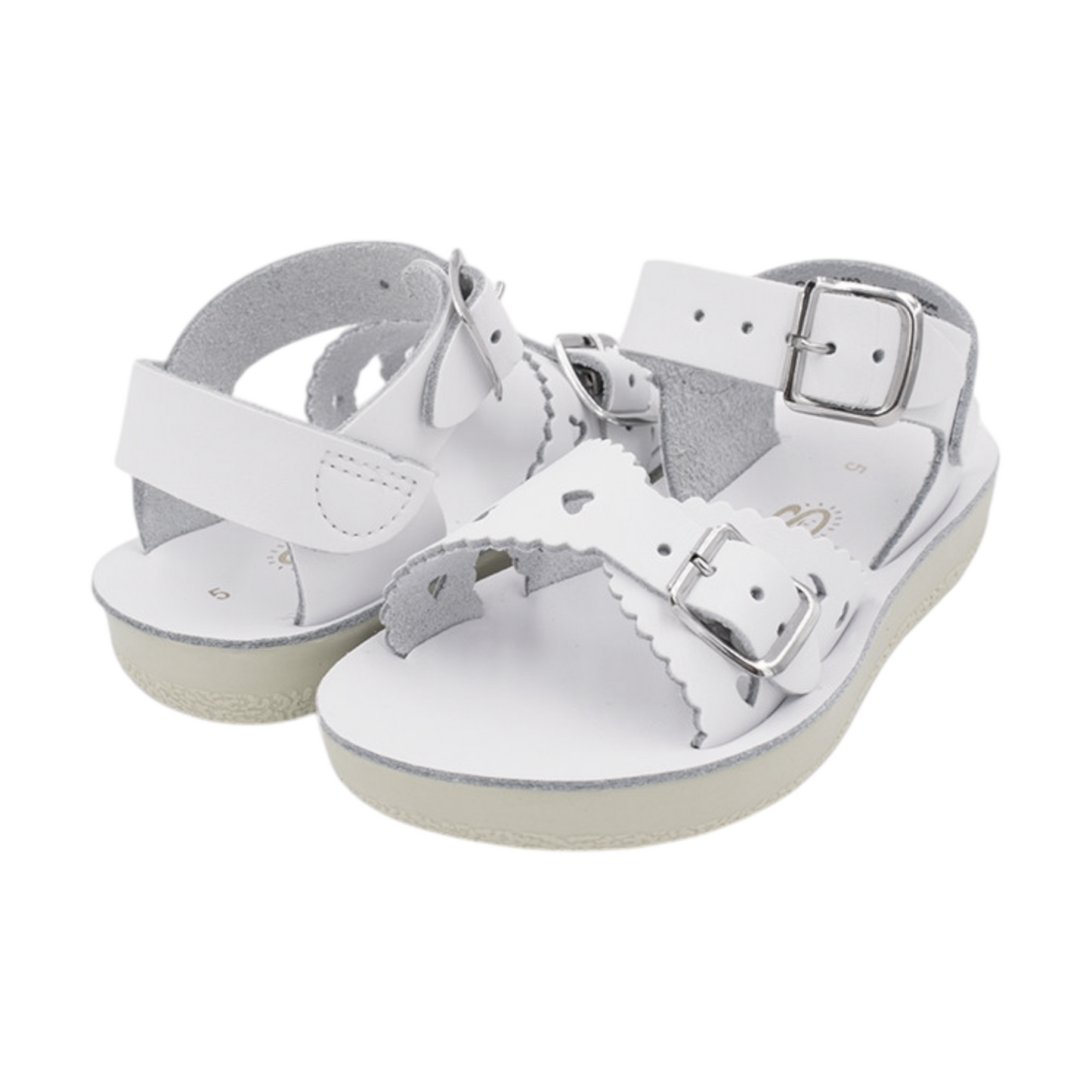 The Sun-San Sweetheart is a pretty sandal with heart-shape cutouts and scalloped edges. It’s fully adjustable with a buckled toe and ankle straps. As seen on many celebrities’ kids, the Sweetheart is a popular choice. The combination of comfort, durability and fashion make these a wear-anywhere sandal.