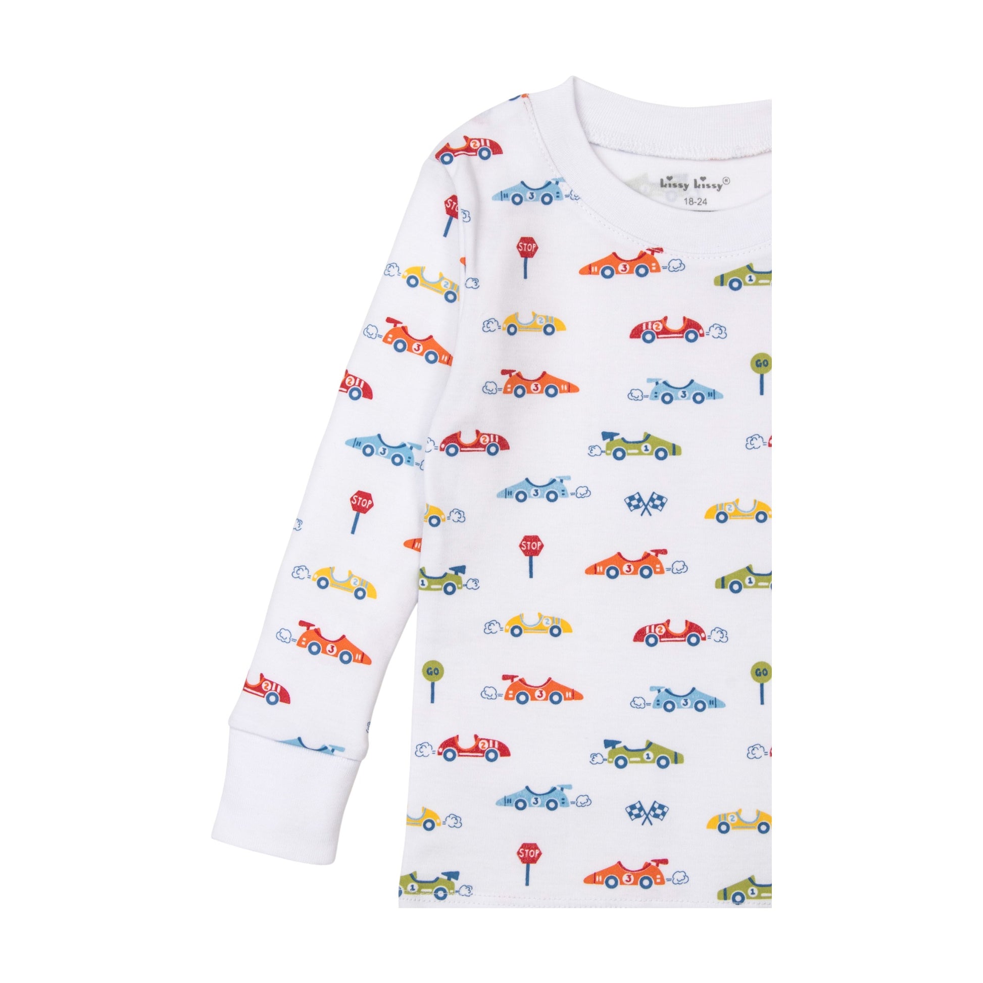 Zoom into bedtime with these fun speedway themed pajamas. Made from the softest 100% Pima cotton, your little one is sure to get a good night's sleep!