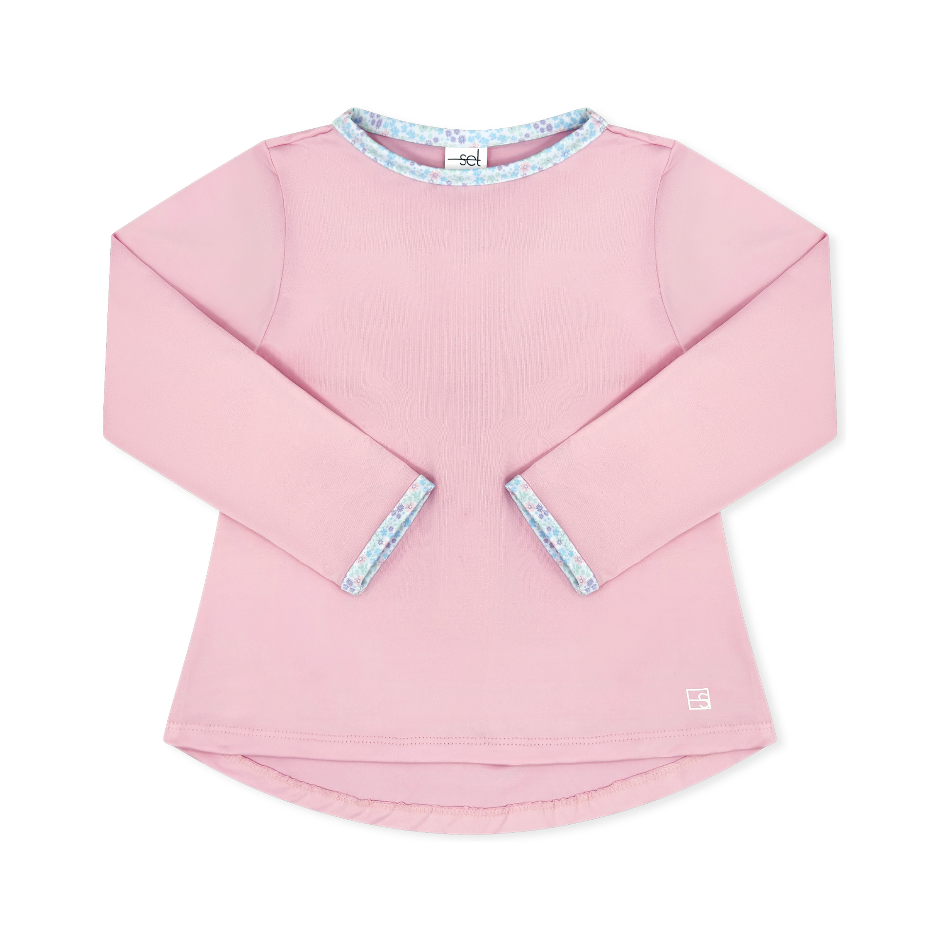 Our Taylor Long Sleeve Tee is a longer style with a cute pleat down the back. This Cotton Candy Pink athleisure top with Kindness Blooms detail is designed to go back with our leggings.