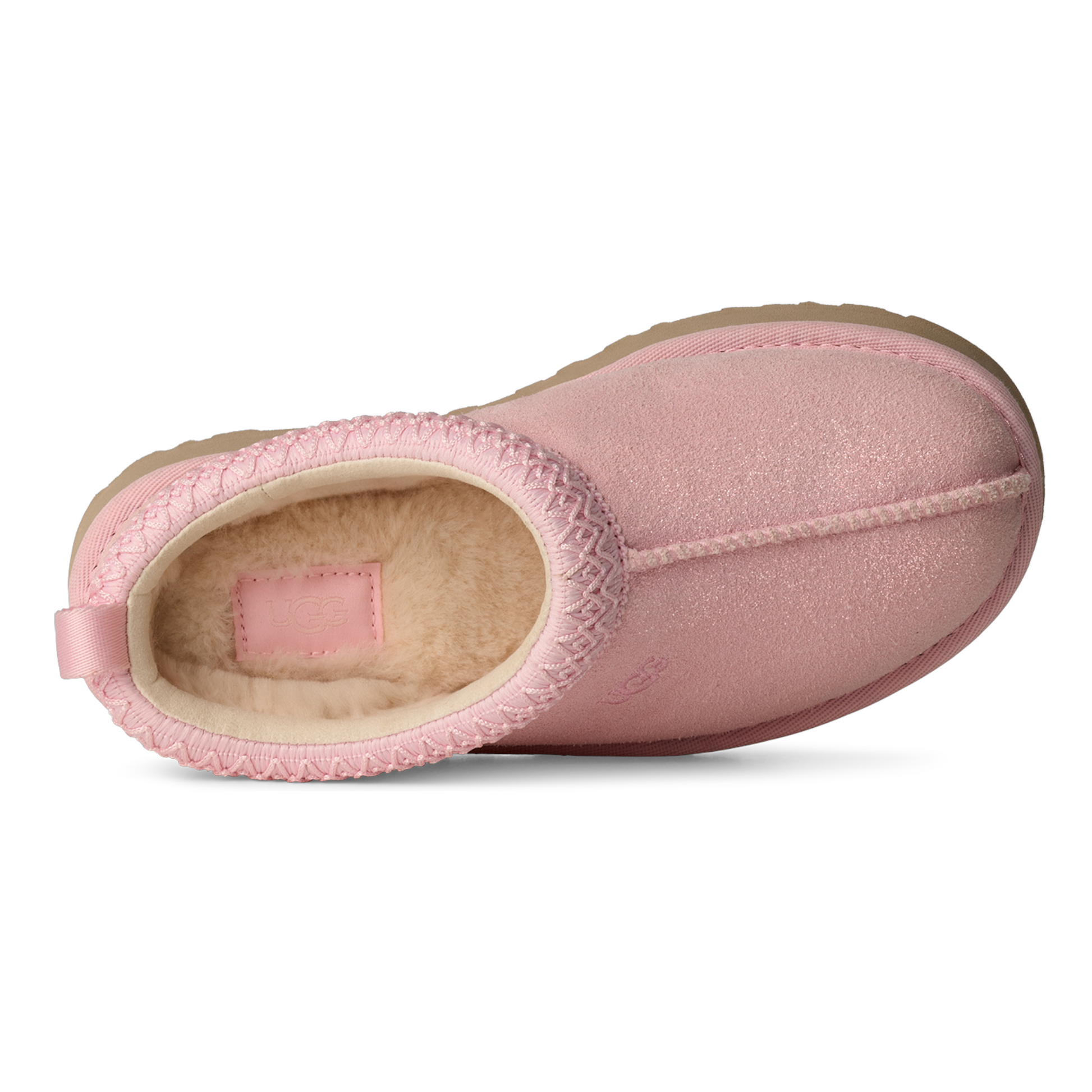 A little shimmer goes a long way, just ask our Tazz Dazzle. This indoor-outdoor slipper is an instant mood-booster with its sparkling suede upper and trendy 1" platform. Inside, little toes will be kept toasty with our UGGplush™ lining and insole while the renewable sugarcane EVA sole keeps things light. It's complete with a padded collar and handy rear pull-tab for easier on-and-off.