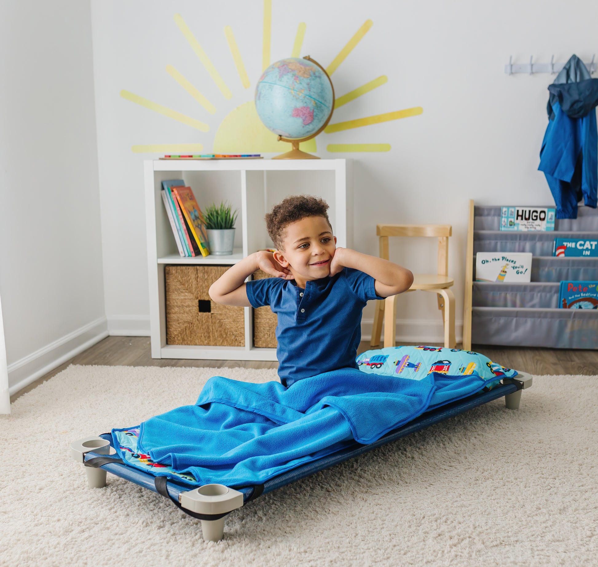 Wildkin’s Quilted Nap Mat was designed with daycare and preschool naps in mind. The Quilted Nap Mat features elastic straps at each of the four corners that secure it to a daycare or preschool cot. Measuring 49.5 x 20 inches and machine washable, each Nap Mat comes complete with a pillow insert and built-in blanket. Lightweight and functional, the Nap Mat features an easy roll-up design and attached carrying handle for the ultimate nap-and-go experience. Your little one’s naptime will be that much sweeter when they’re tucked inside Wildkin's Quilted Nap Mat.