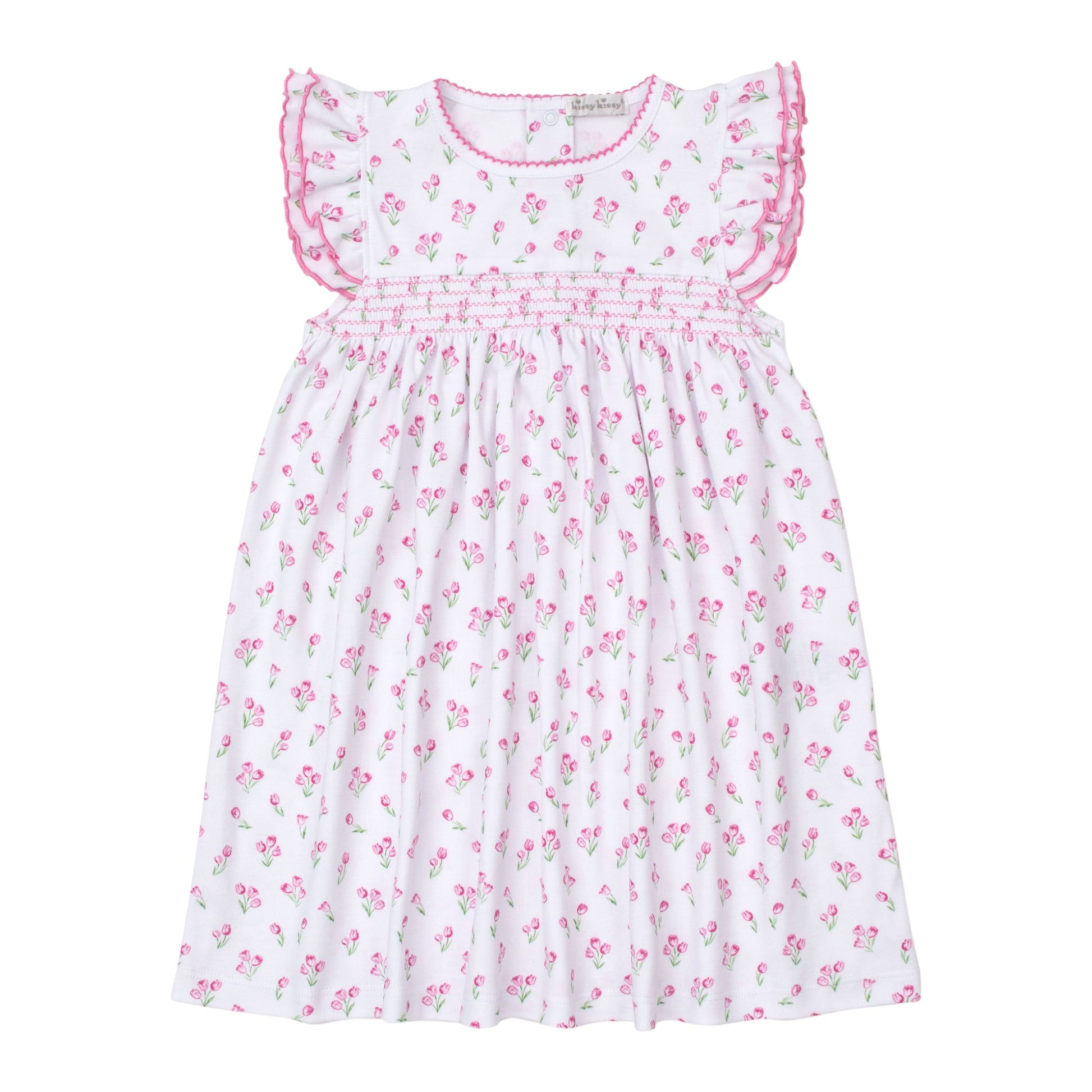 Our pretty timeless tulips pattern adorns this darling smocked dress. Made from the softest Pima cotton for ultimate comfort for your toddler.