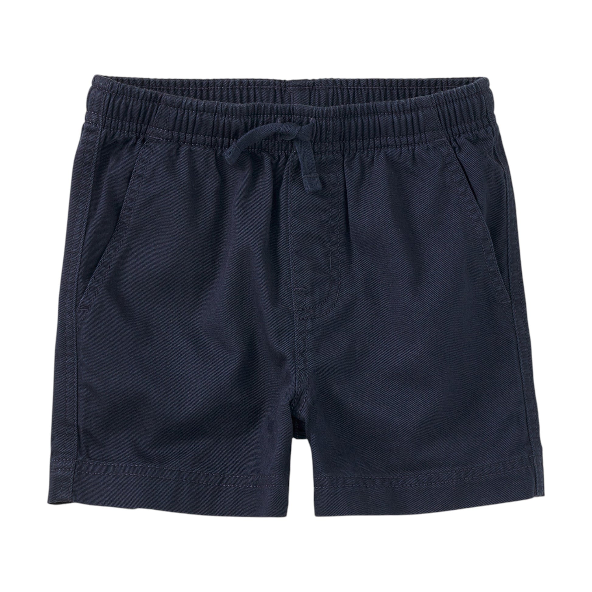 Ready, set, action! These easy-wear sporty shorts feature an elastic waist with a functional drawcord and are made of super soft 100% cotton twill. We've loaded up on stylish extras like slash front pockets and a back patch pocket. Pull together the look with a polo or tee for instant playtime! Mid-thigh length.